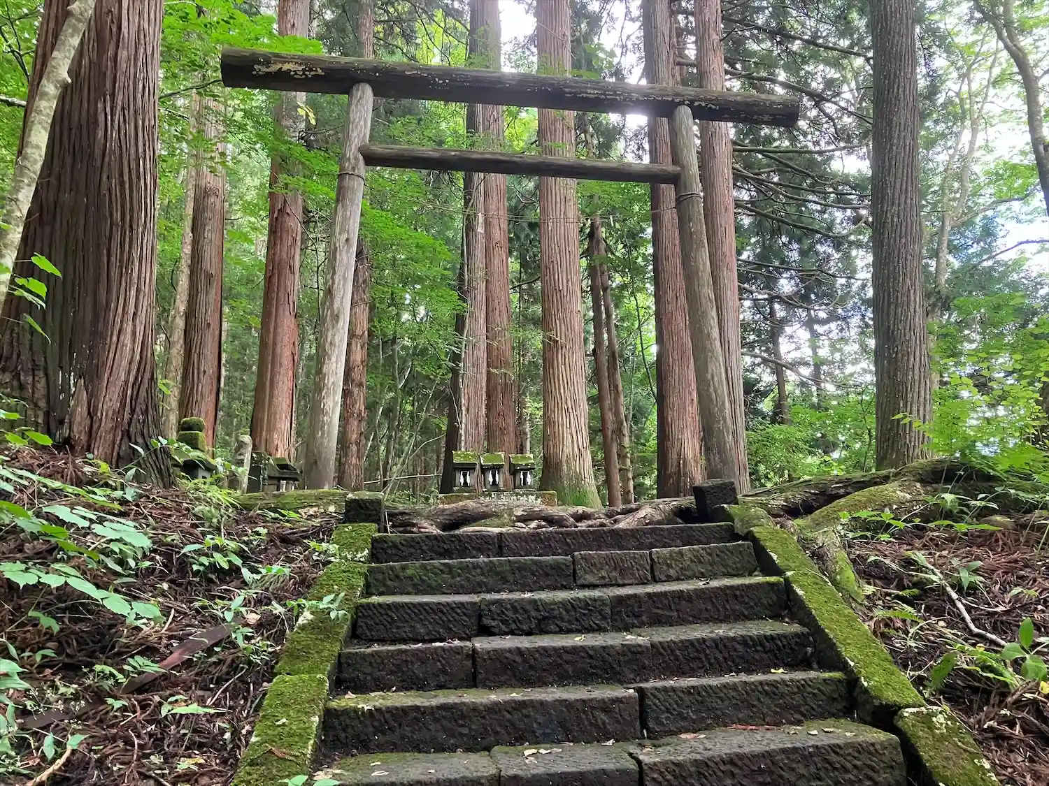 奥社まではバスが通っているので大きな道を通れば五社すべて行くことが可能ですが、今回は宝光社の横に伸びていたこの神道(かんみち)を通って行きました。