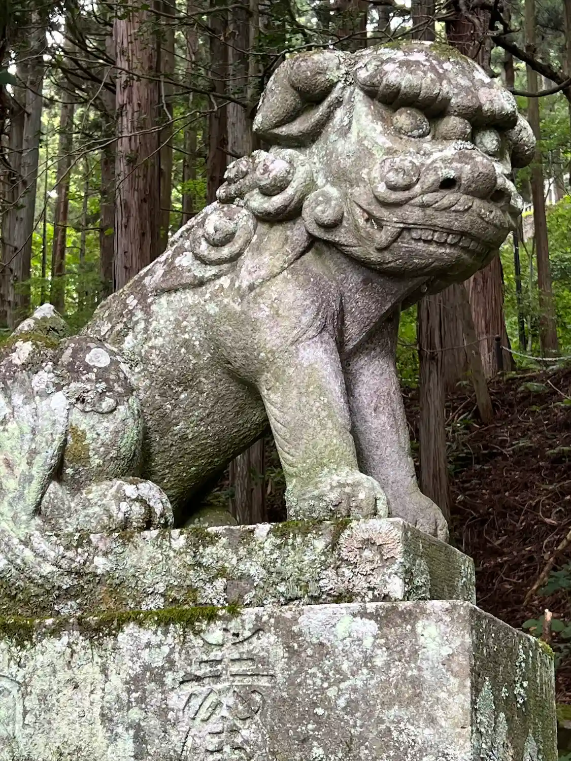 階段下、参道左側の<狛犬>。めっちゃ個性的。他と似ていないところが良い!