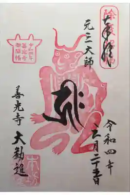 真ん中に大きく善光寺と書かれ、社印が押された御朱印です。