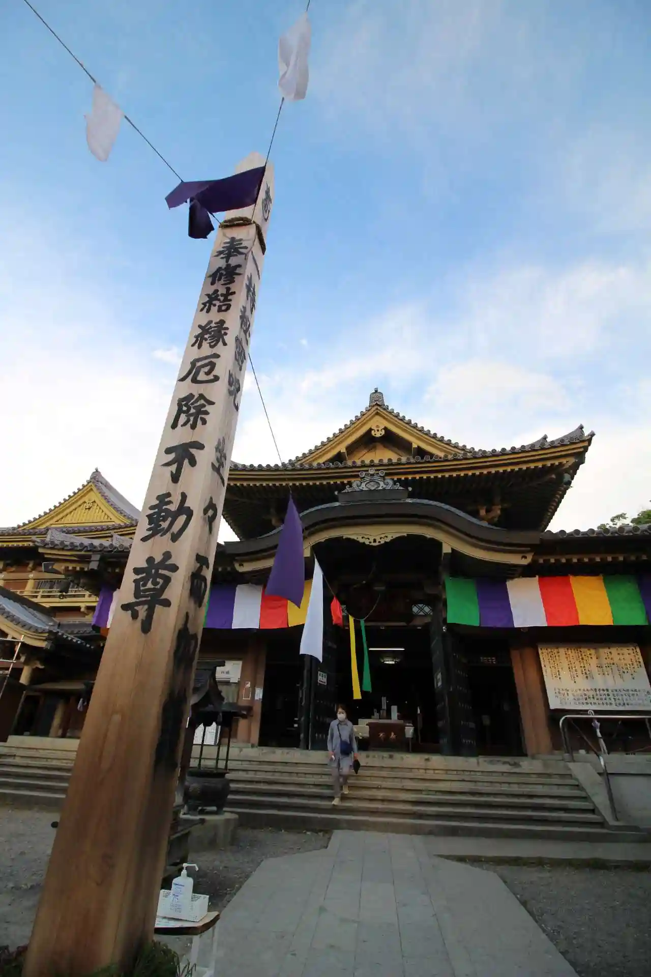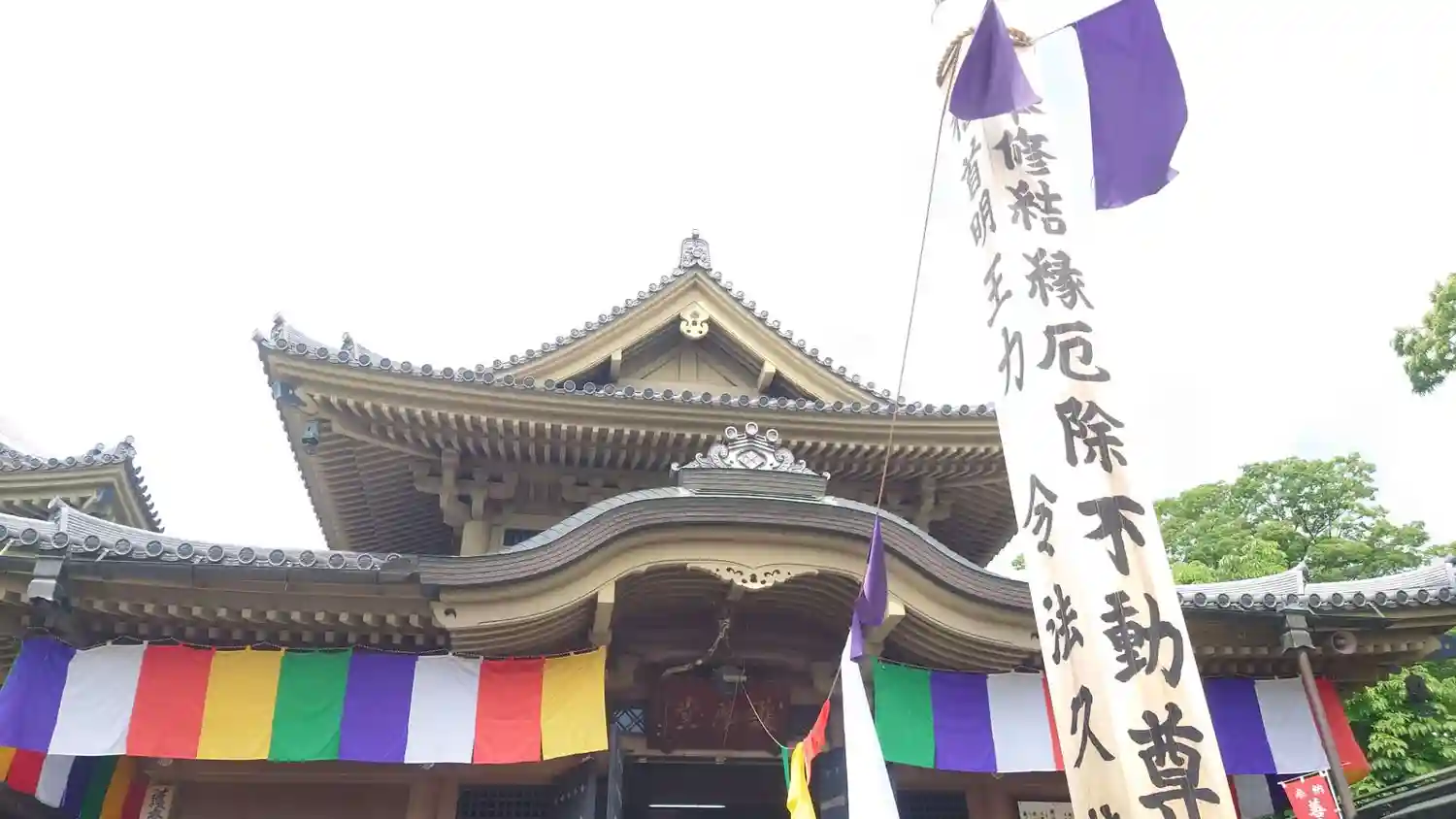 位牌堂の右隣、敷地北端にあって東向きに建っている<護摩堂>。こちらにも回向柱が立っている。下陣の「厄除不動尊」の扁額は東郷元師の筆。