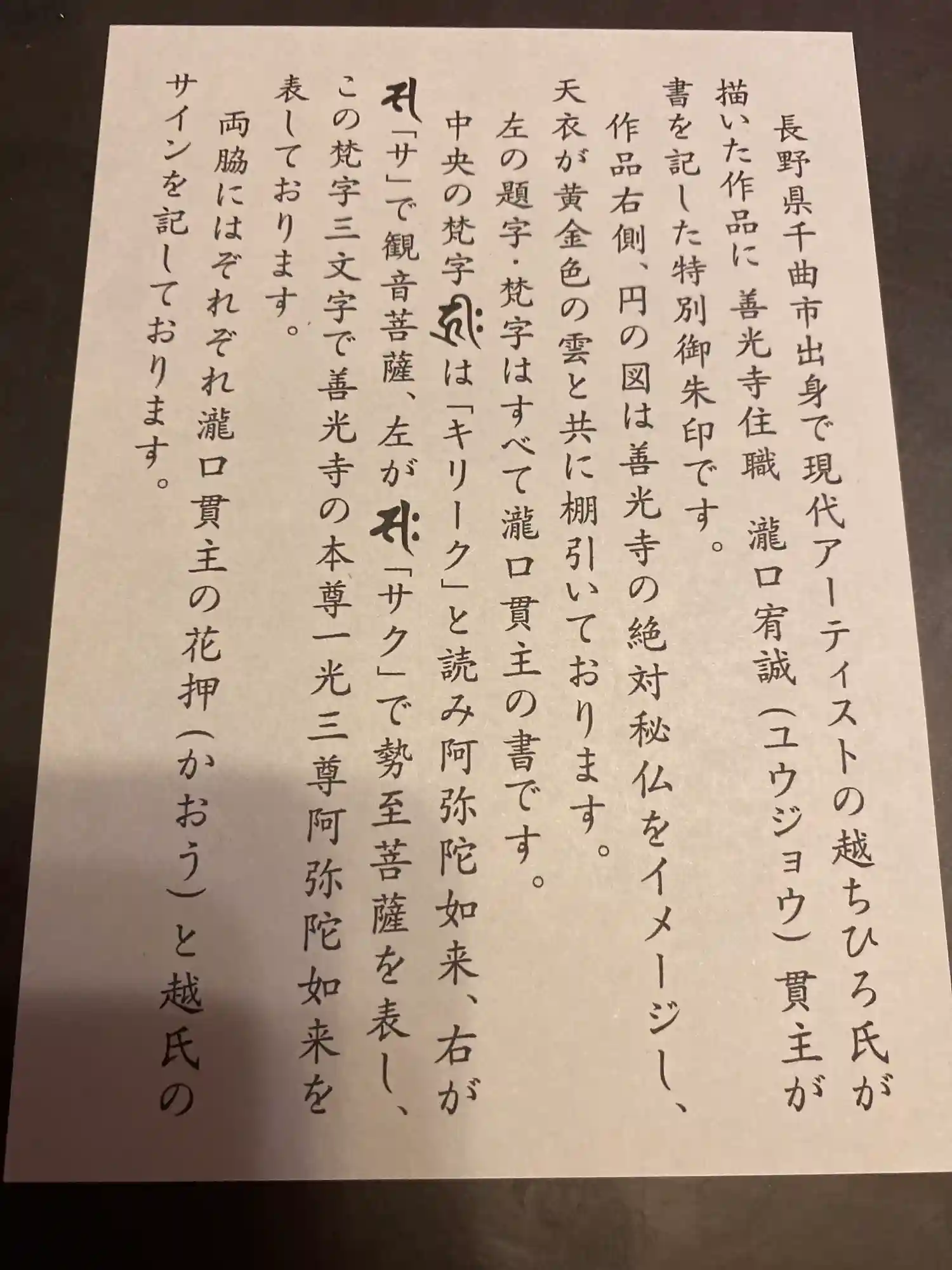 長野県千曲市出身の現代アーティストの越ちひろ氏と善光寺住職様とのコラボ