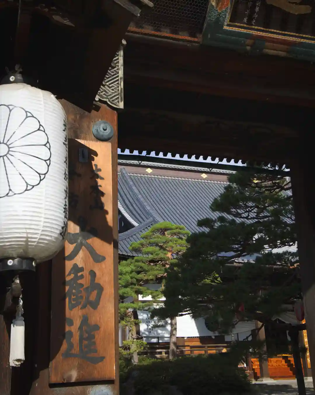 大門に掛かる「大勧進」の扁額。中国・清の閔鶚元氏の筆。