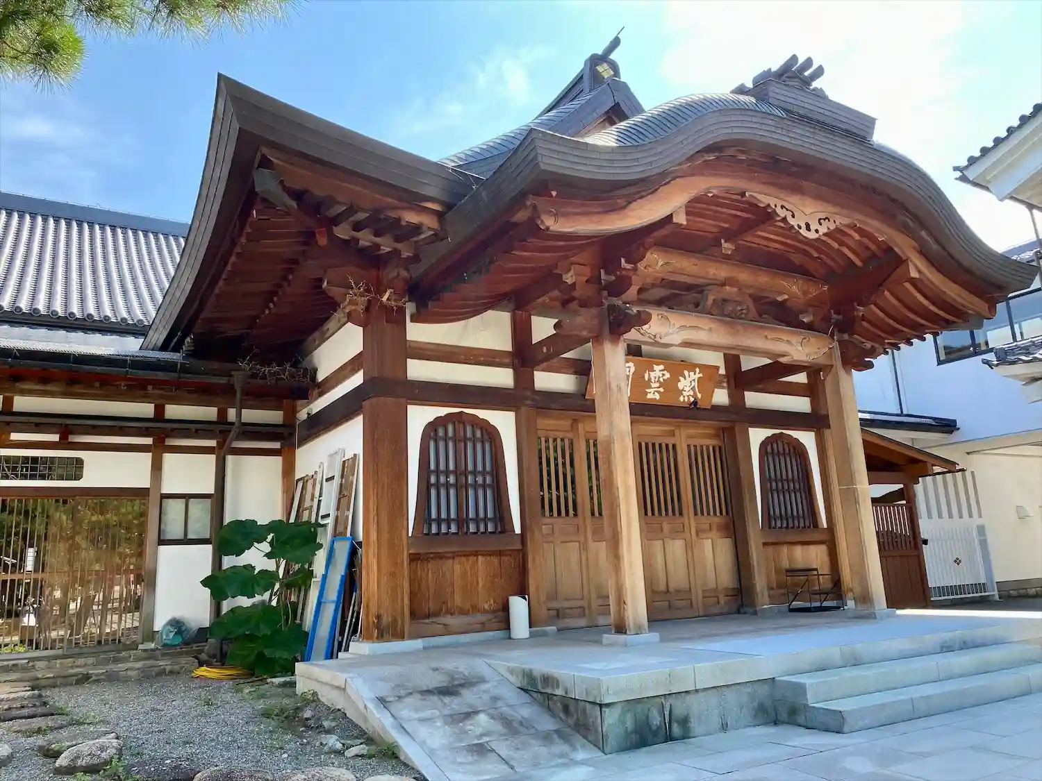大門をくぐって左側(南側)にある<紫雲閣>の入口。2006年竣工の客殿。
