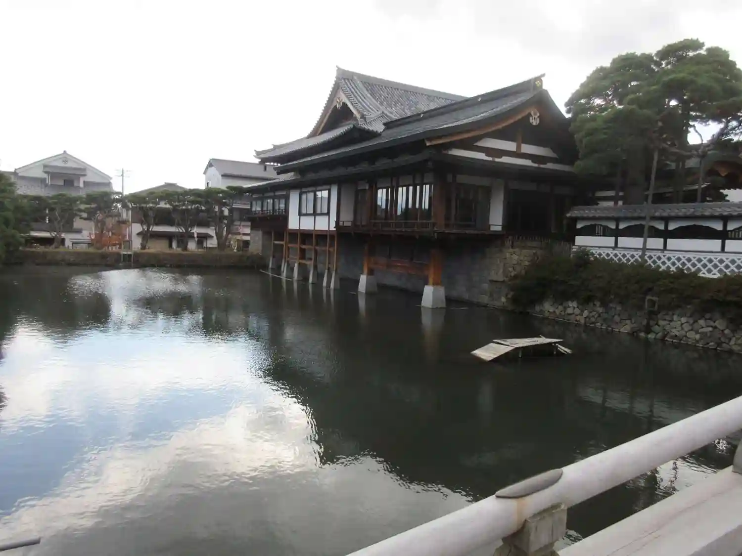 橋の左側(南側)の眺め。突き出している建物は、客殿の<紫雲閣>。