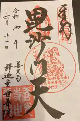 善光寺七福神の毘沙門天の御朱印を直書きでいただきました。