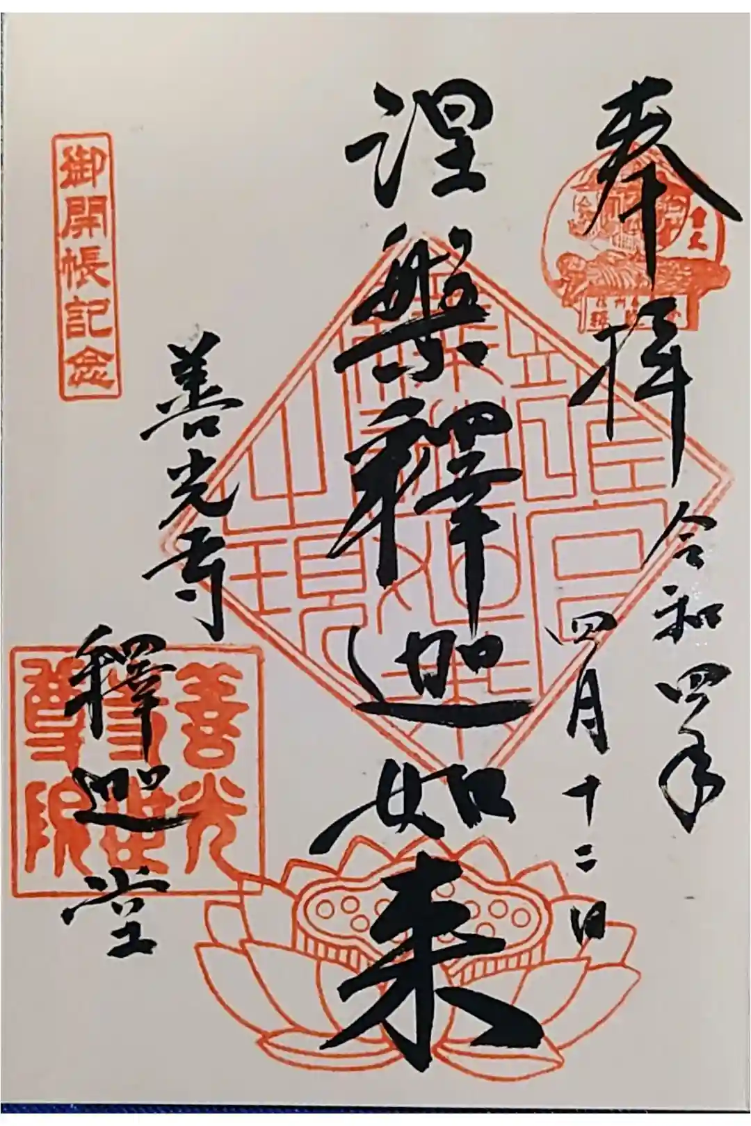 御本尊の涅槃釈迦如来の御朱印を直書きでいただきました。