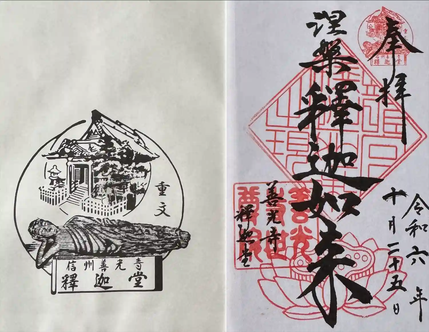 御本尊(釈迦如来)の御朱印(左)