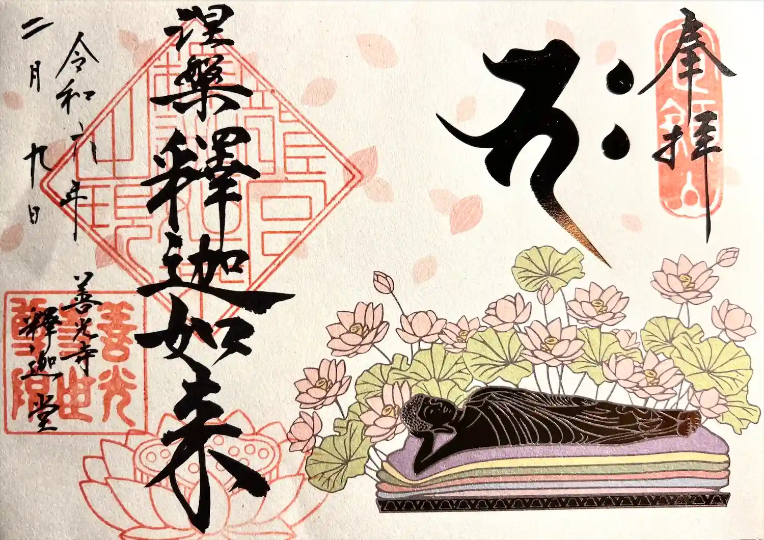 御本尊「涅槃釈迦如来」様の御朱印頂きました。