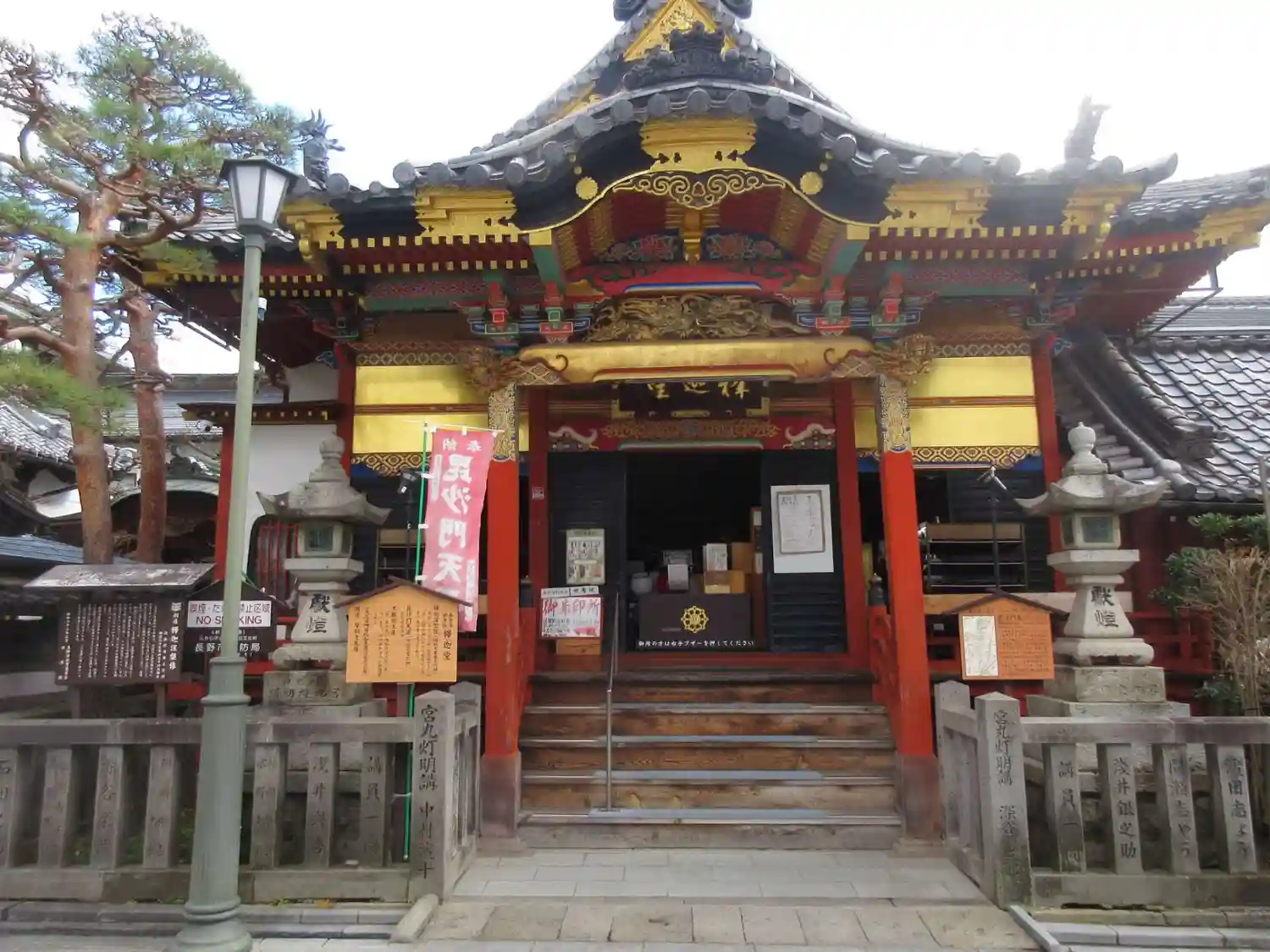 善光寺七福神の毘沙門天を祀っている神社です。善光寺へ向かう仲見世通りを歩くと、脇道から寺院が見えま…