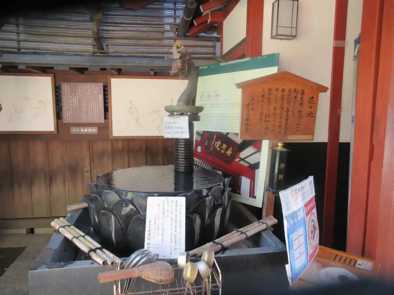 飲めないと書いてあったのと、ザル類が用意されていたので銭洗いしてみましたw