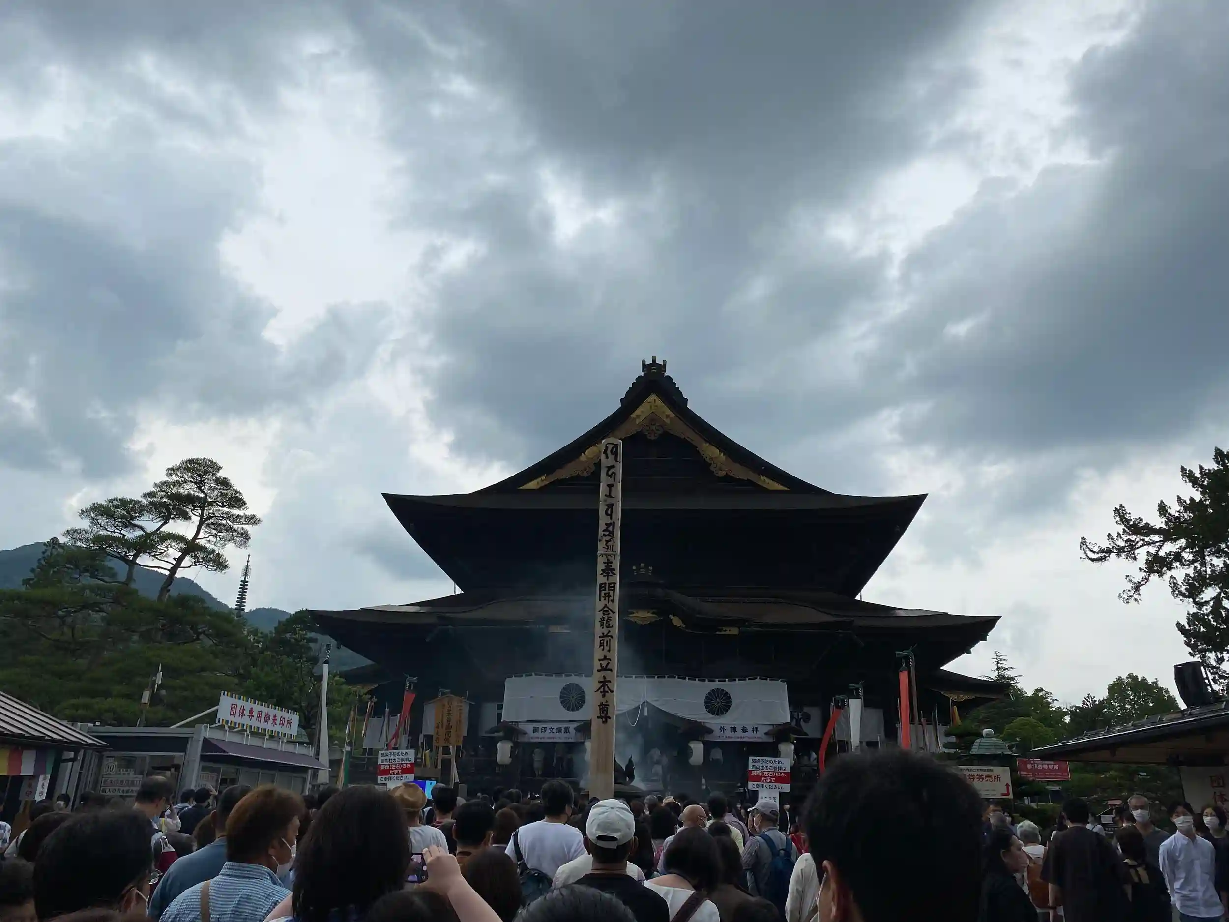 元々の採用は契約社員でした、長野県の事業所へ出向でご縁があり正社員になれました、役職も頂きました。転勤が私を成長させていただいたと思っています、御礼参りを兼ねて、母にもいつも支えて頂いたから今の自分が居ると思う、お参りの日は14時に長野駅に着いて向かいました、ホトカミの皆様からの投稿は朝一や日中のお参りが投稿して、私は夜のライトアップを投稿したいと思い、まず宿坊様善光寺大本願様などの御朱印受付に回っていました、めっちゃ凄い人人人だらけで、身動きするのもままない状況でした、本堂の回向柱に並んだのも15時半頃ですが、めっちゃたくさんの人、6列で並んでなかなか進まない、やっと回向柱の側に、山門をくぐった辺りから雲行きが悪くなり今にでも雨が降り出し☔️そう たくさんの龍神雲様が一眼レフには写せたもの、やっと回向柱の直前でゲリラ豪雨雷 すぐさま売店に避難して傘が買えて待つ事に、雷⚡️ならすぐ大丈夫かなと、母は1人で本堂にお参りして来たらと、雨で足元悪く人もたくさんいるから私は待つよ、でも善光寺様に来れただけで私は心願成就です、いつもなら本堂へと思う私、何故かその時は龍神様から気づきと奇跡があったのです、少し弱くなって来たので、下に下がりすぐさまバス🚌🚍がツイてる、良かった。帰ってから2日後に母のスニーカーの👟少し踵が取れていました、何事も無く無事にお参りが出来て幸せです。龍🐉🐲神様は母のスニーカー👟が分かっていたのかもしれませんが。母から回向柱を納めた後御礼参りに連れてと、とてもステキなご縁を頂きました。仏恩感謝 仏力 仏縁感謝致します。