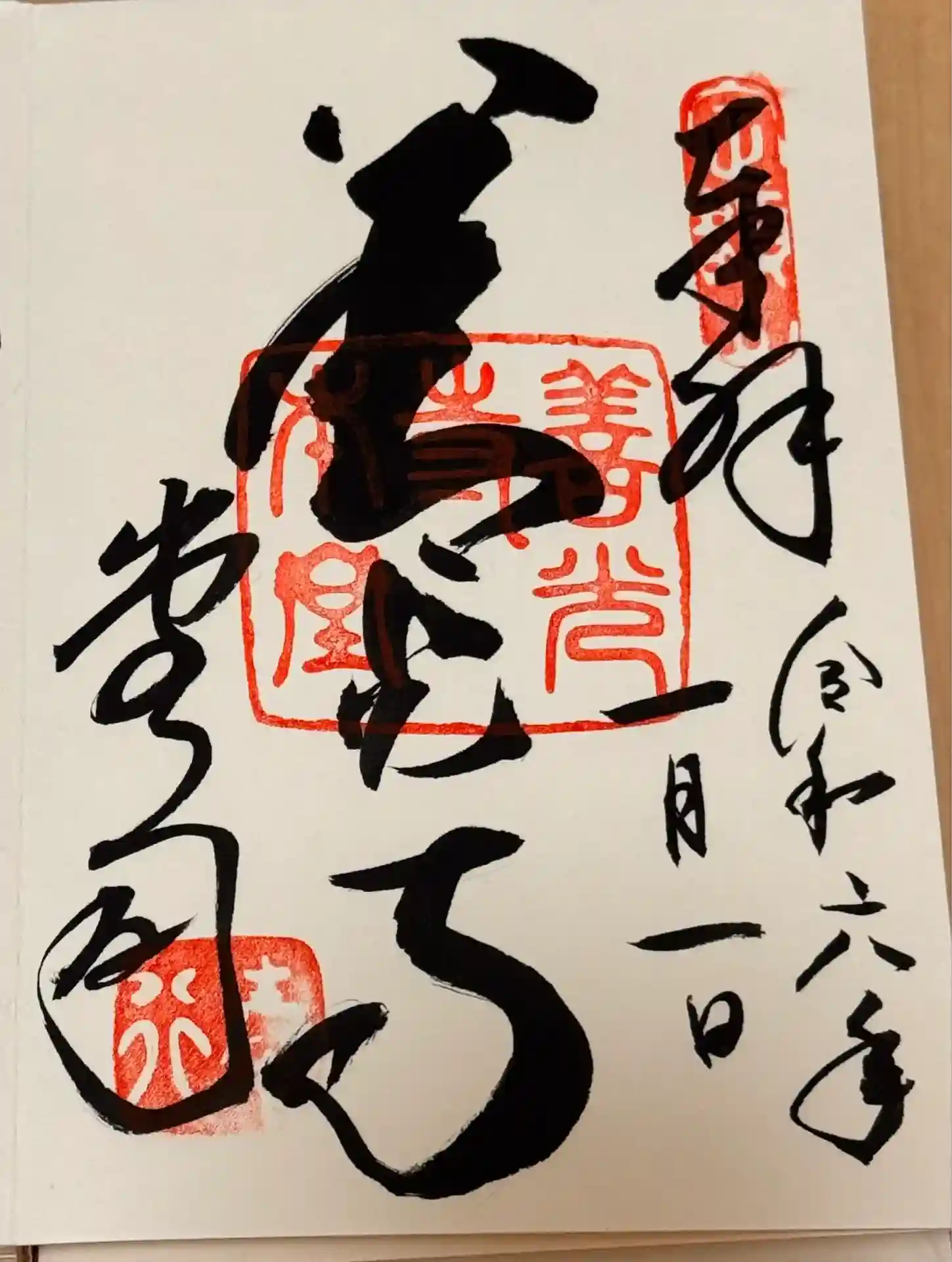 御朱印帳の御朱印が乾き切ってなくて、隣側に少し墨が移ってましたので、やむ無く書き置きを貼りました。