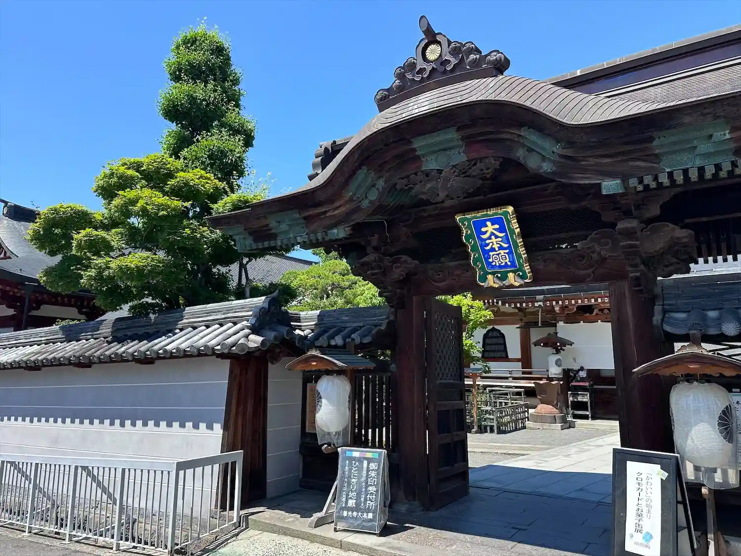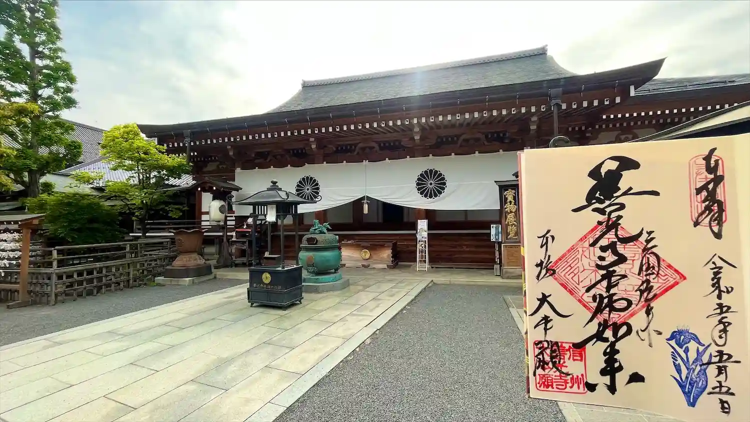 白蓮坊を出て少し進んだところで左折し、大本願で今年の夏季限定御朱印(金文字5枚セット)をいただきま…
