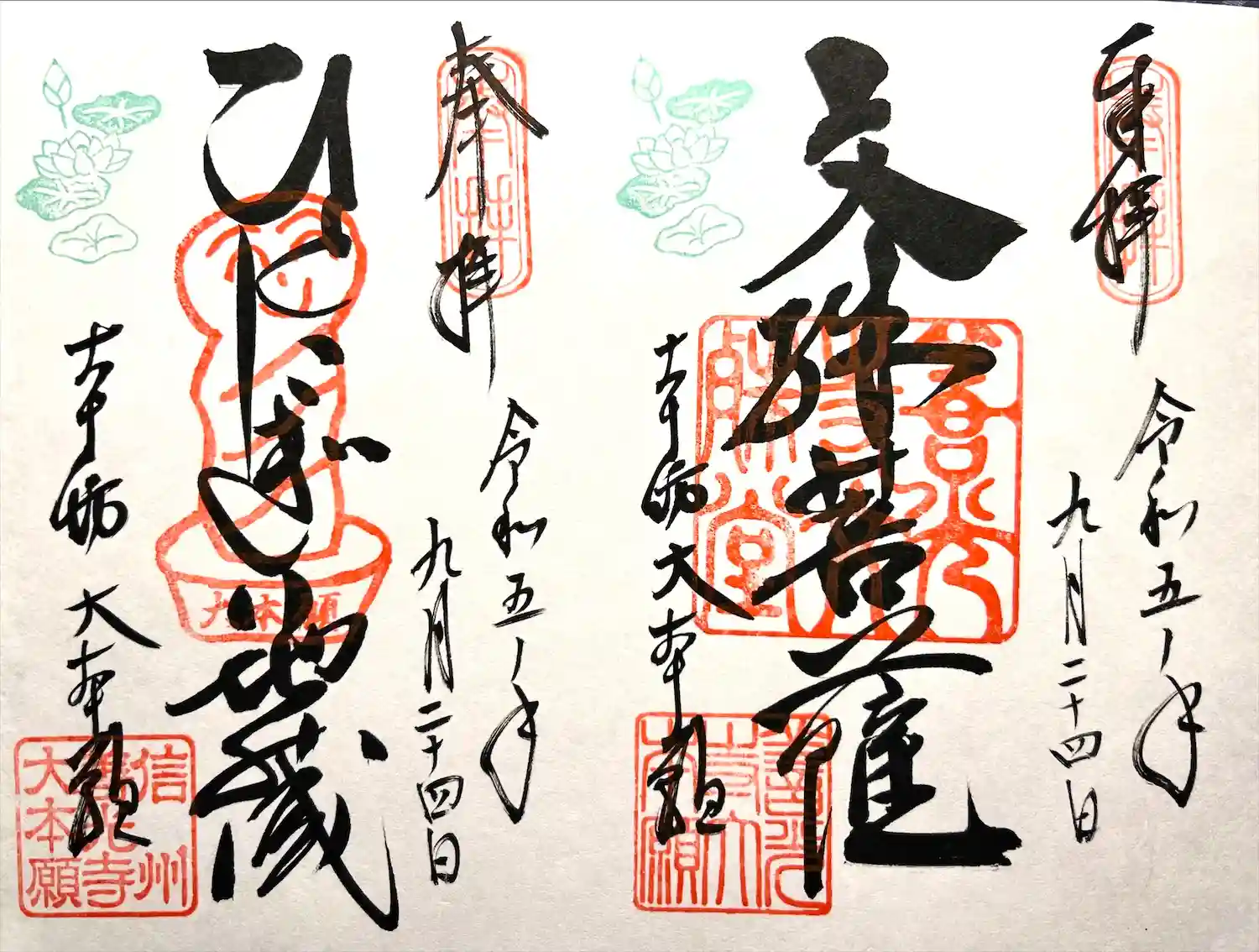 令和四年前立本尊御朱印五枚組
