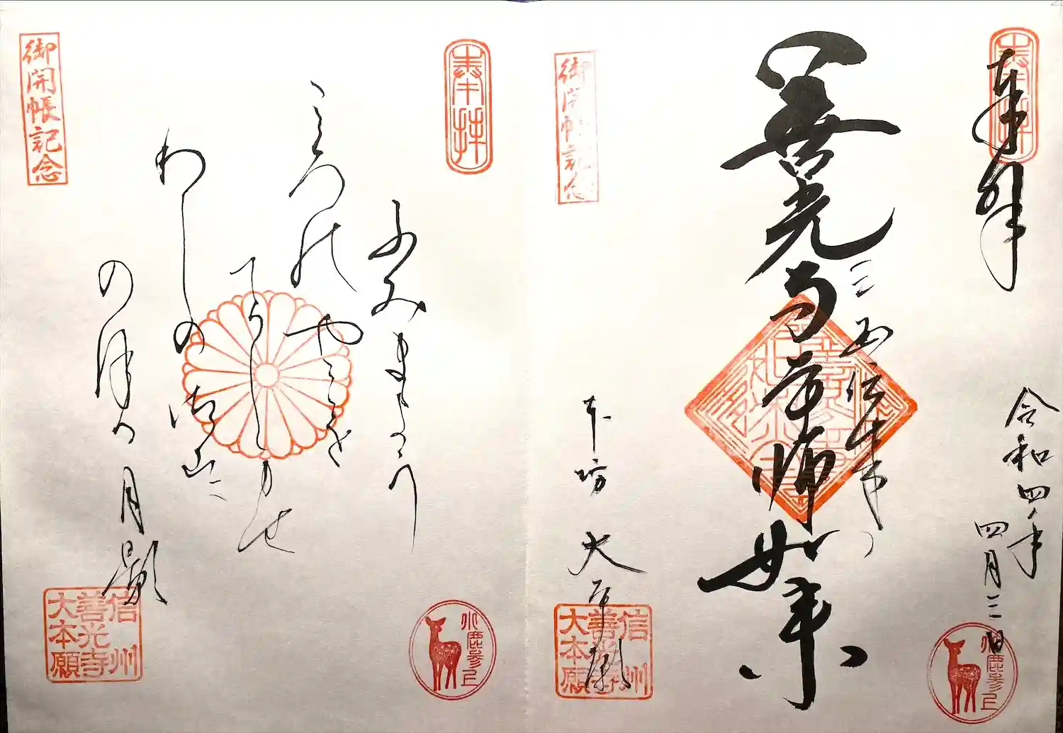 善光寺大本願の2ヶ月事に絵柄が変わる御朱印をいただきました