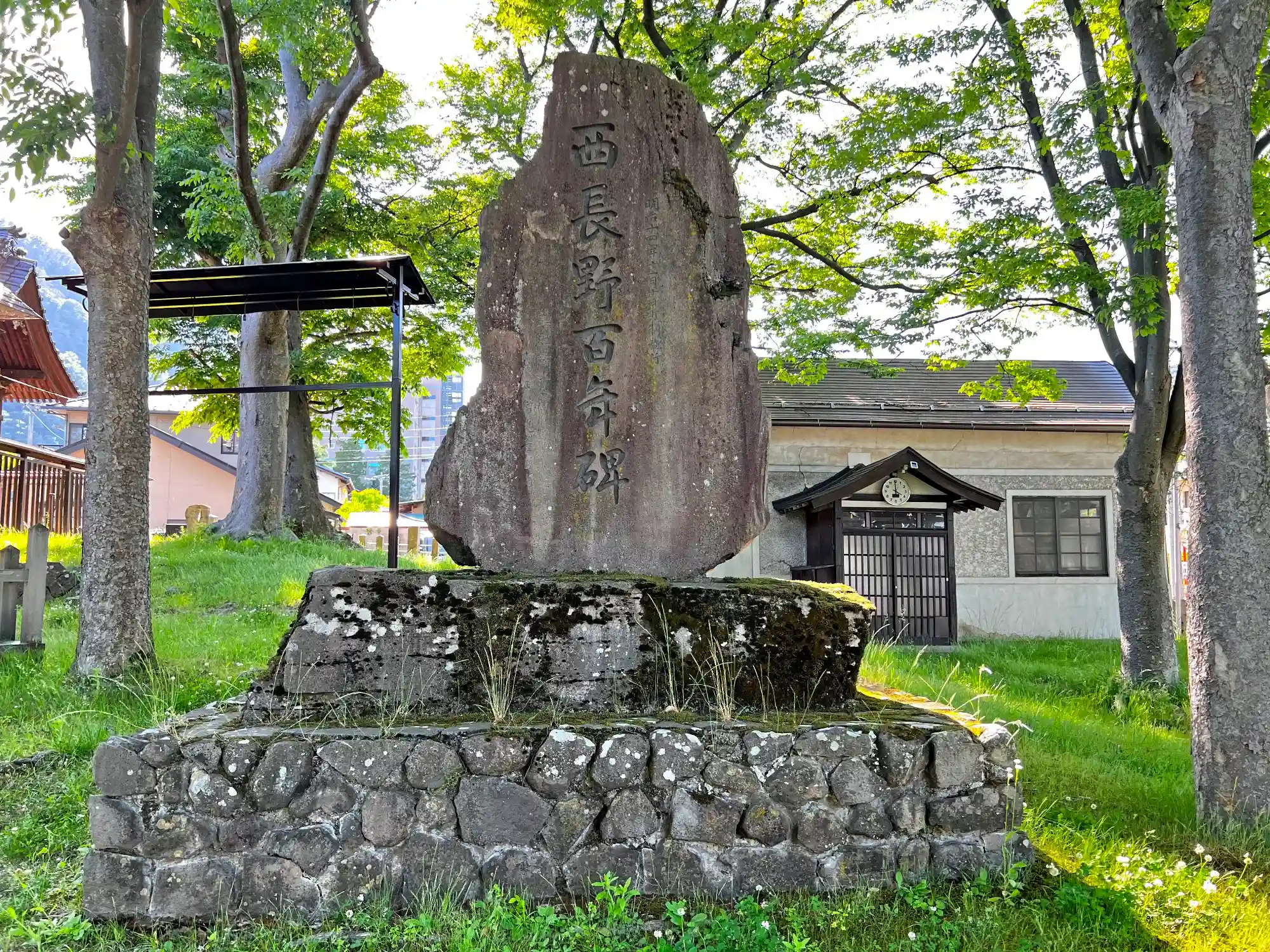 境内にある「西長野百年碑」。