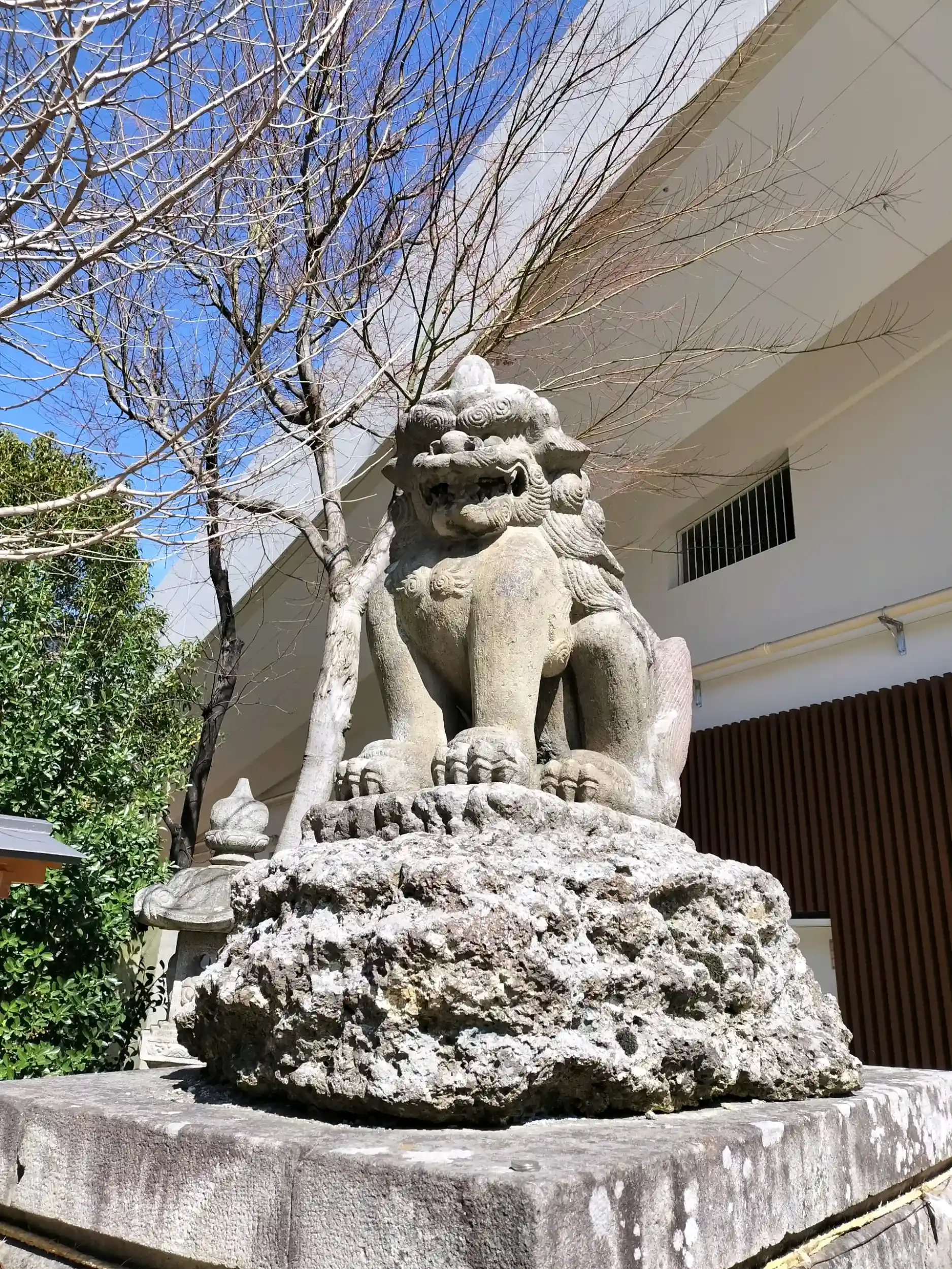 勢獅子のブロンズ像が鳥居横にあります。