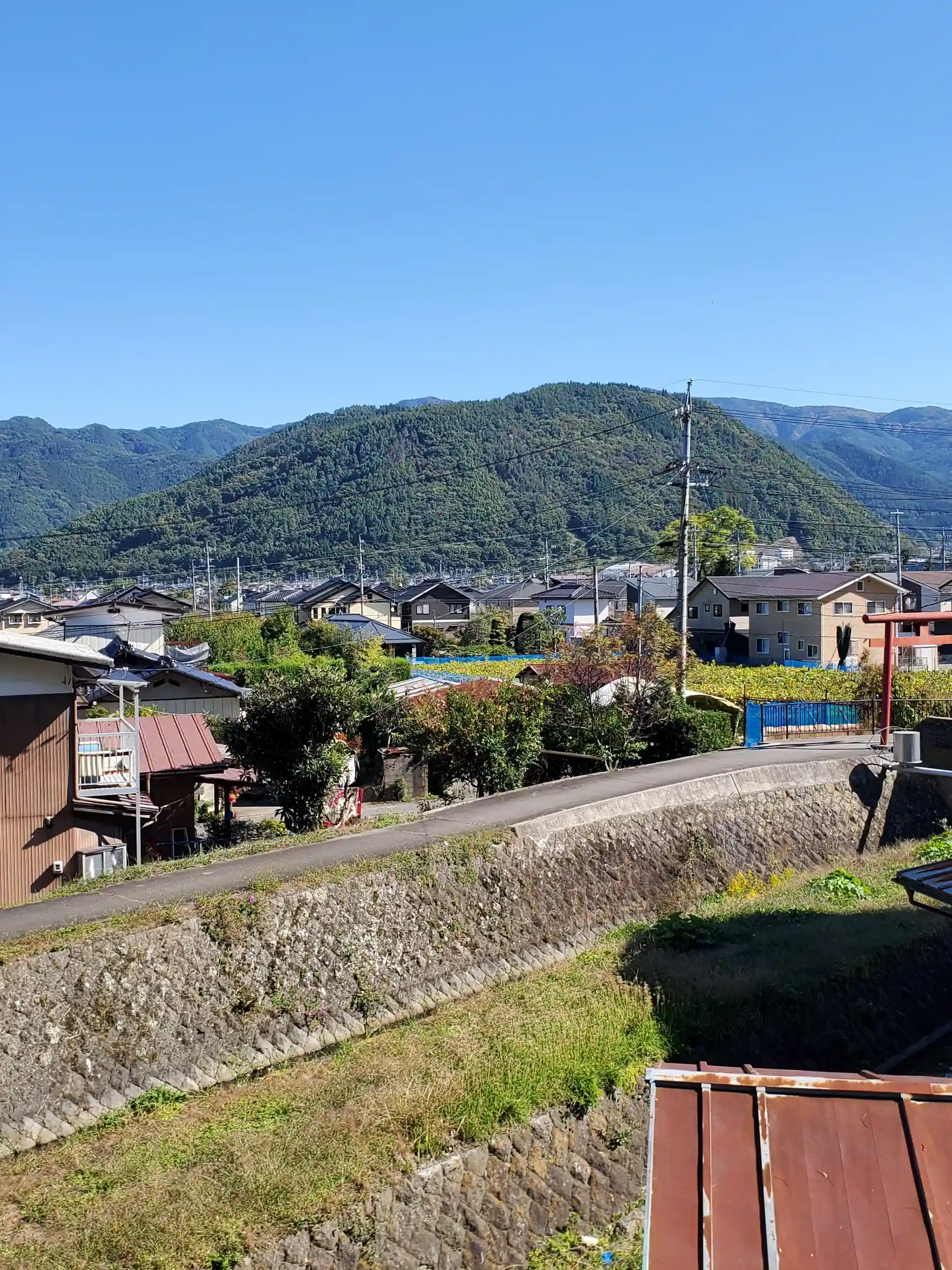 右にちょこっと見えてるのが、松代五社最後の白鳥神社のある山