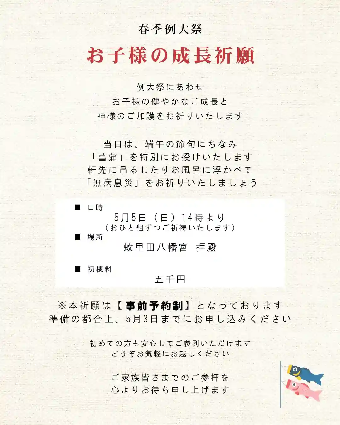 【5月5日 お子様成長祈願 ご案内】