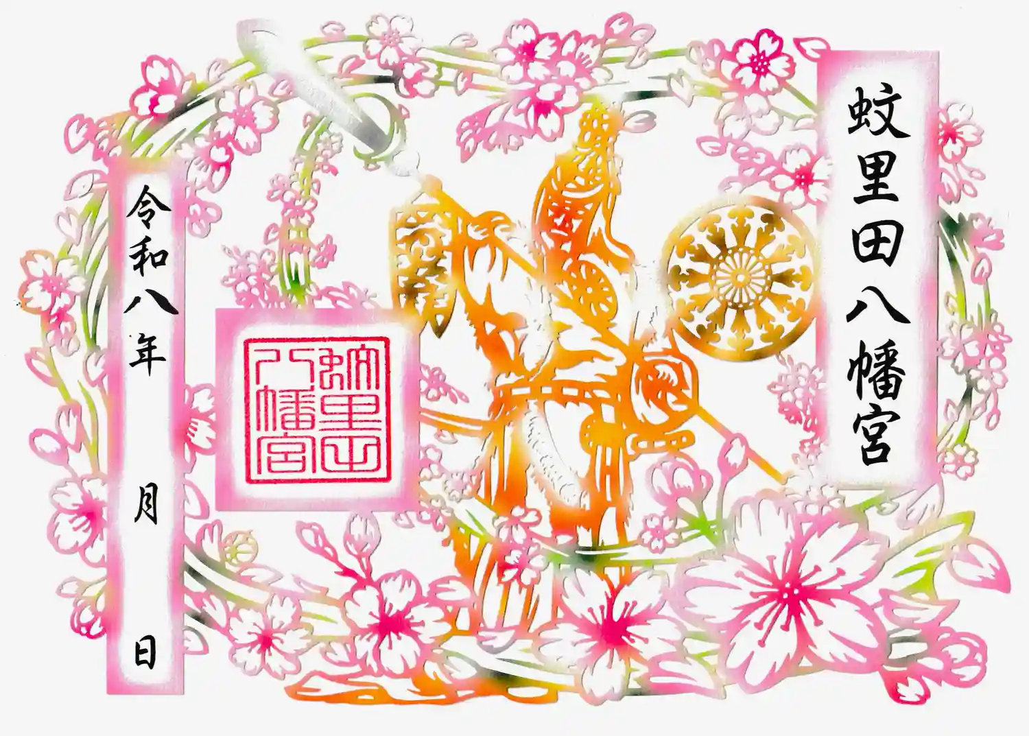 令和8年春の切り絵御朱印『散手(さんじゅ)の舞と桜』 初穂料1200円