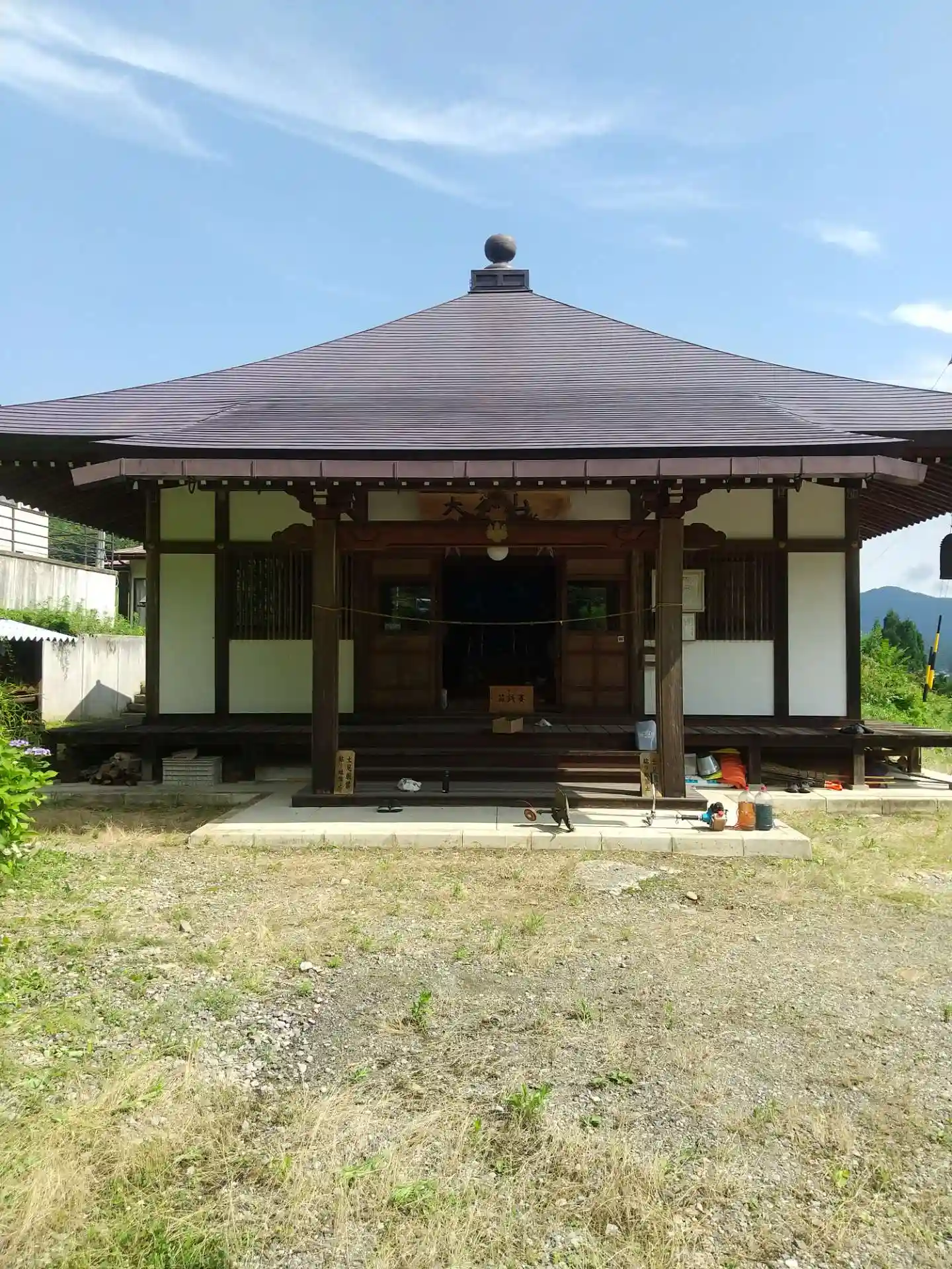 観音堂です。かつては裏山を5分ほど登ったところに古い観音堂がありましたが、境内に遷されました。信濃三十三観音霊場十番札所、北信濃十三仏霊場八番札所となっています。