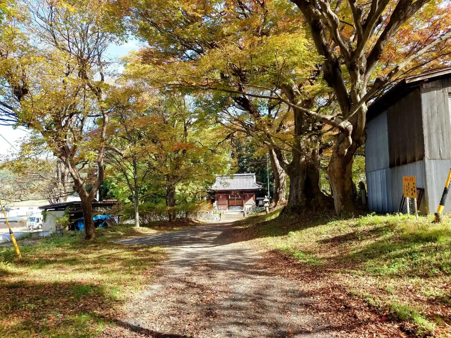 県道29号を挟んで参道が続いていて参道は太いけやきの木が何本も。…