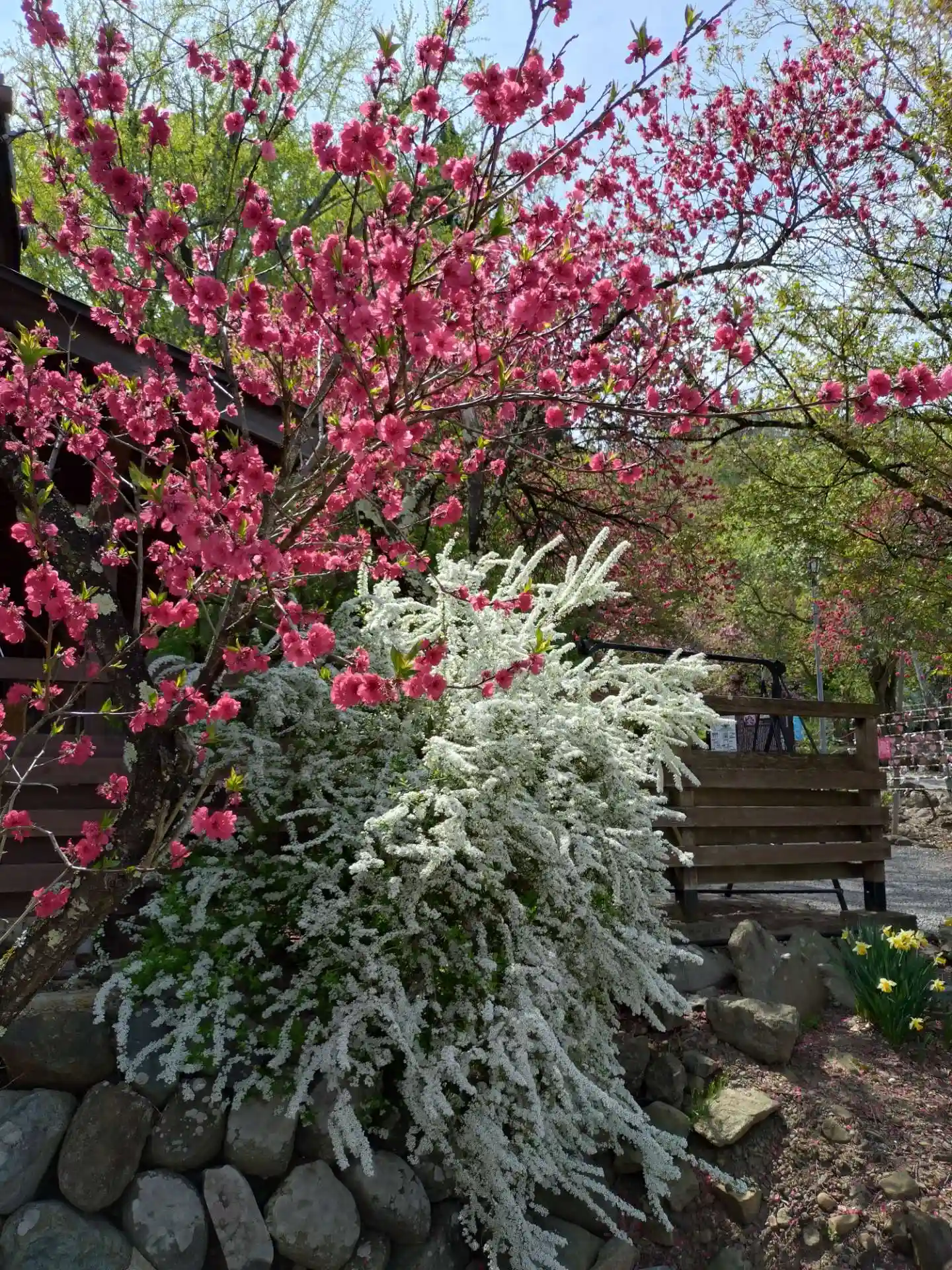 友人と小布施を旅しました。しだれ桜やハナミズキ、様々な花が一斉に咲いている花と北斎の町。