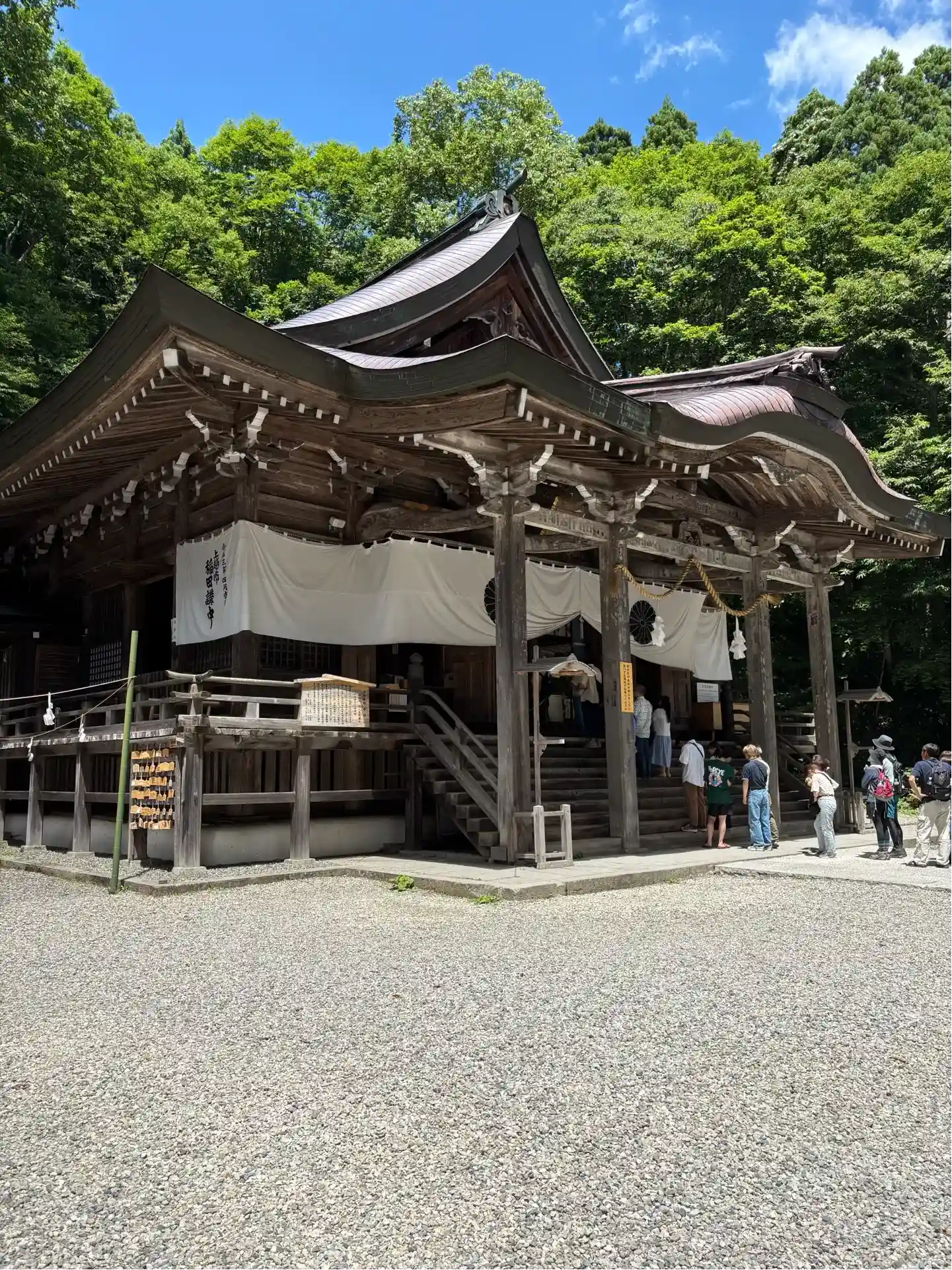 奥社とはまた違った雰囲気で、大鳥居や拝殿、樹齢800年越えの三本杉などスケールの大きさに目を引きます。