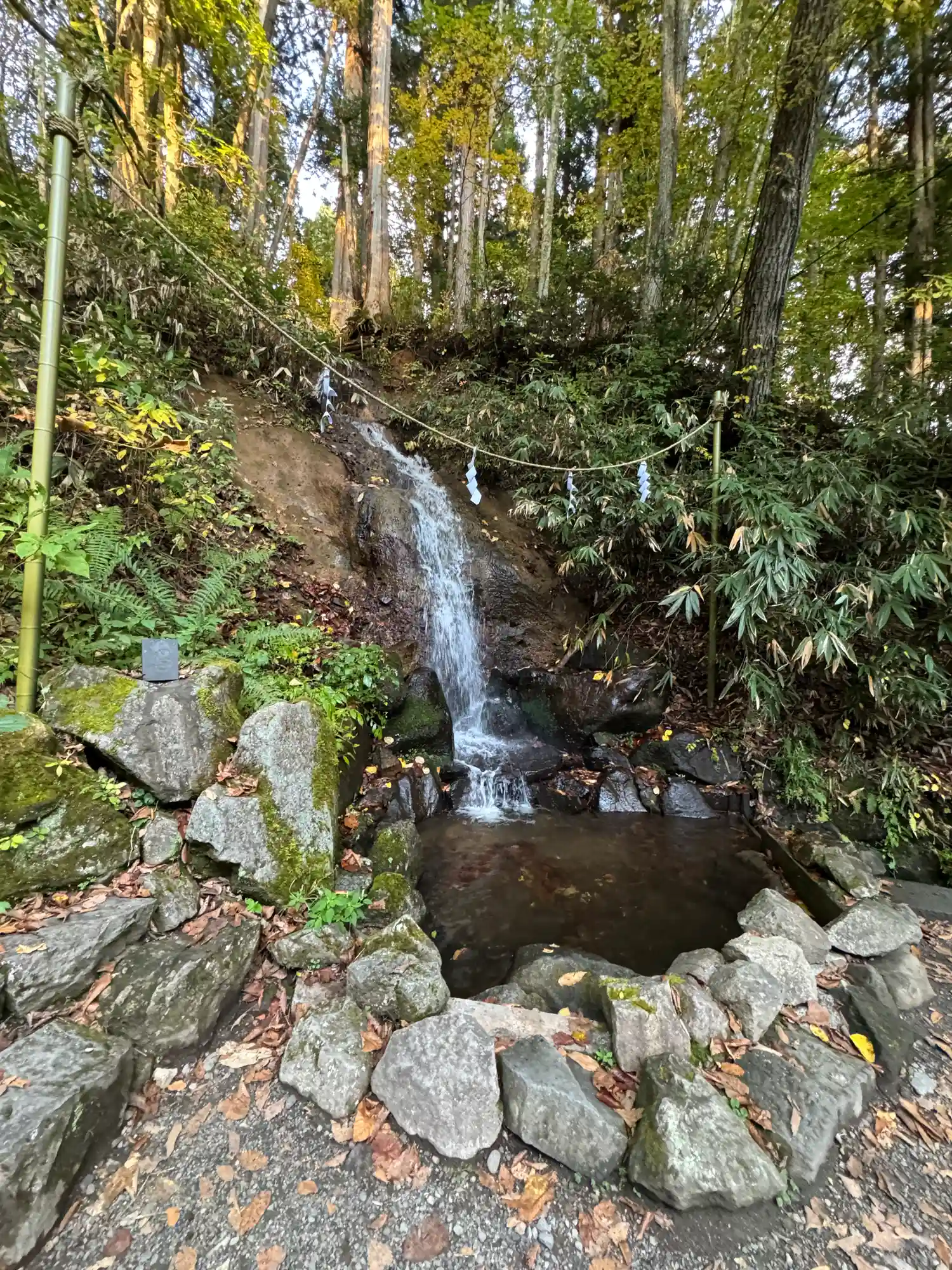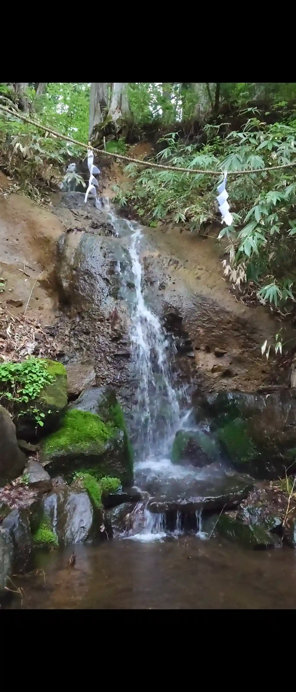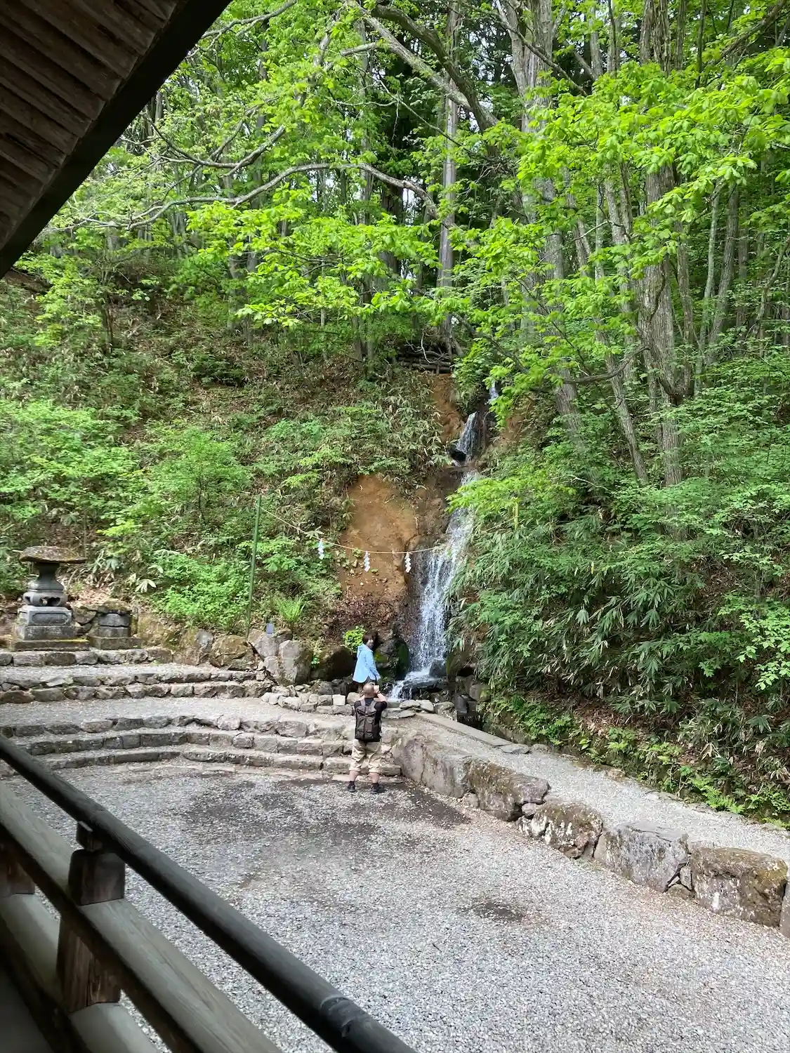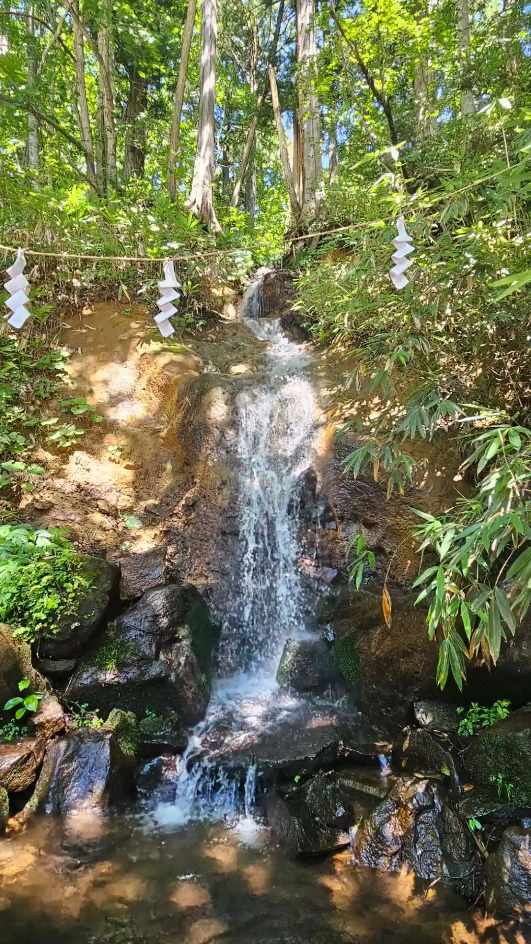 お社の右側に行くと、滝がありました!