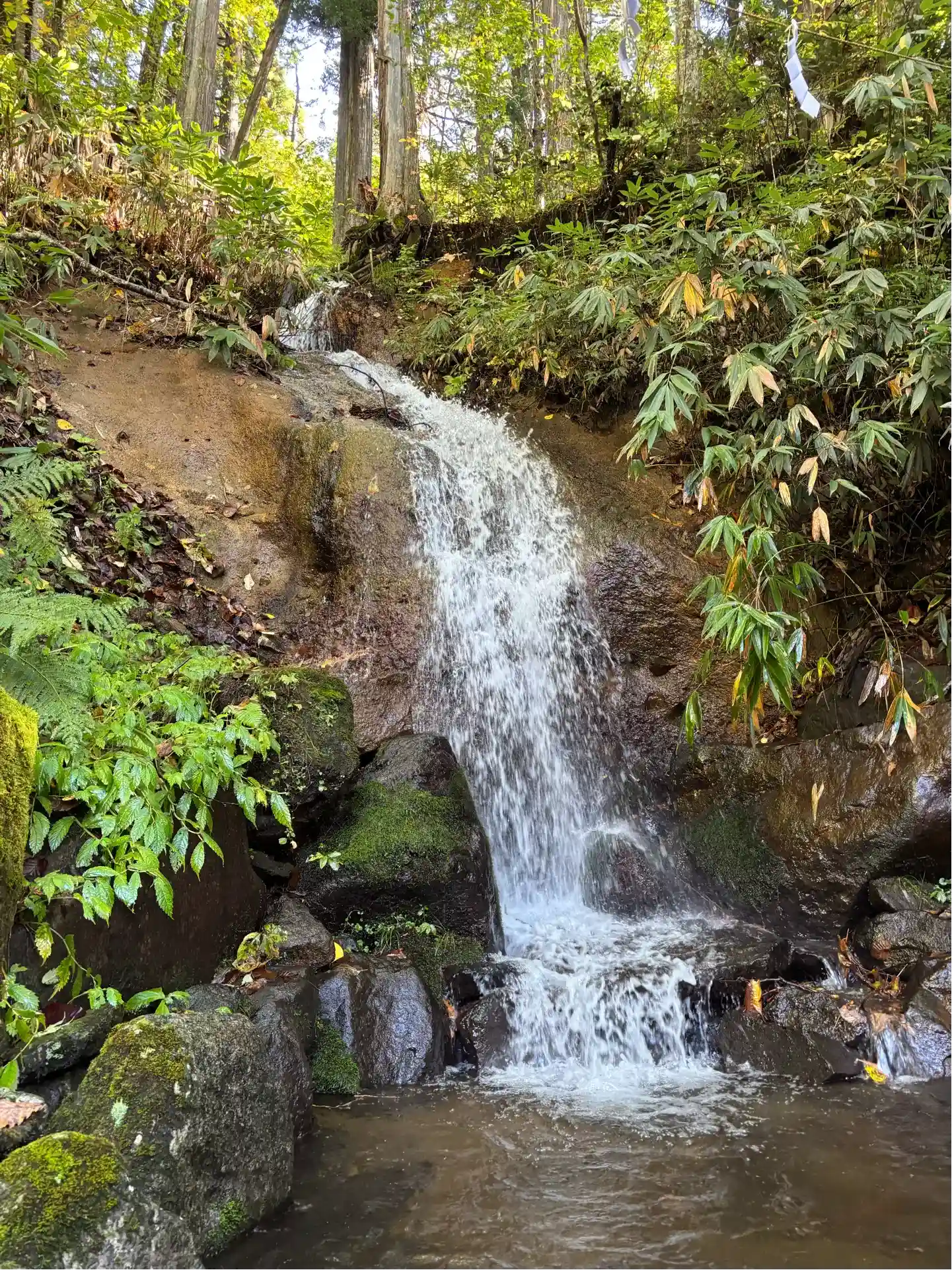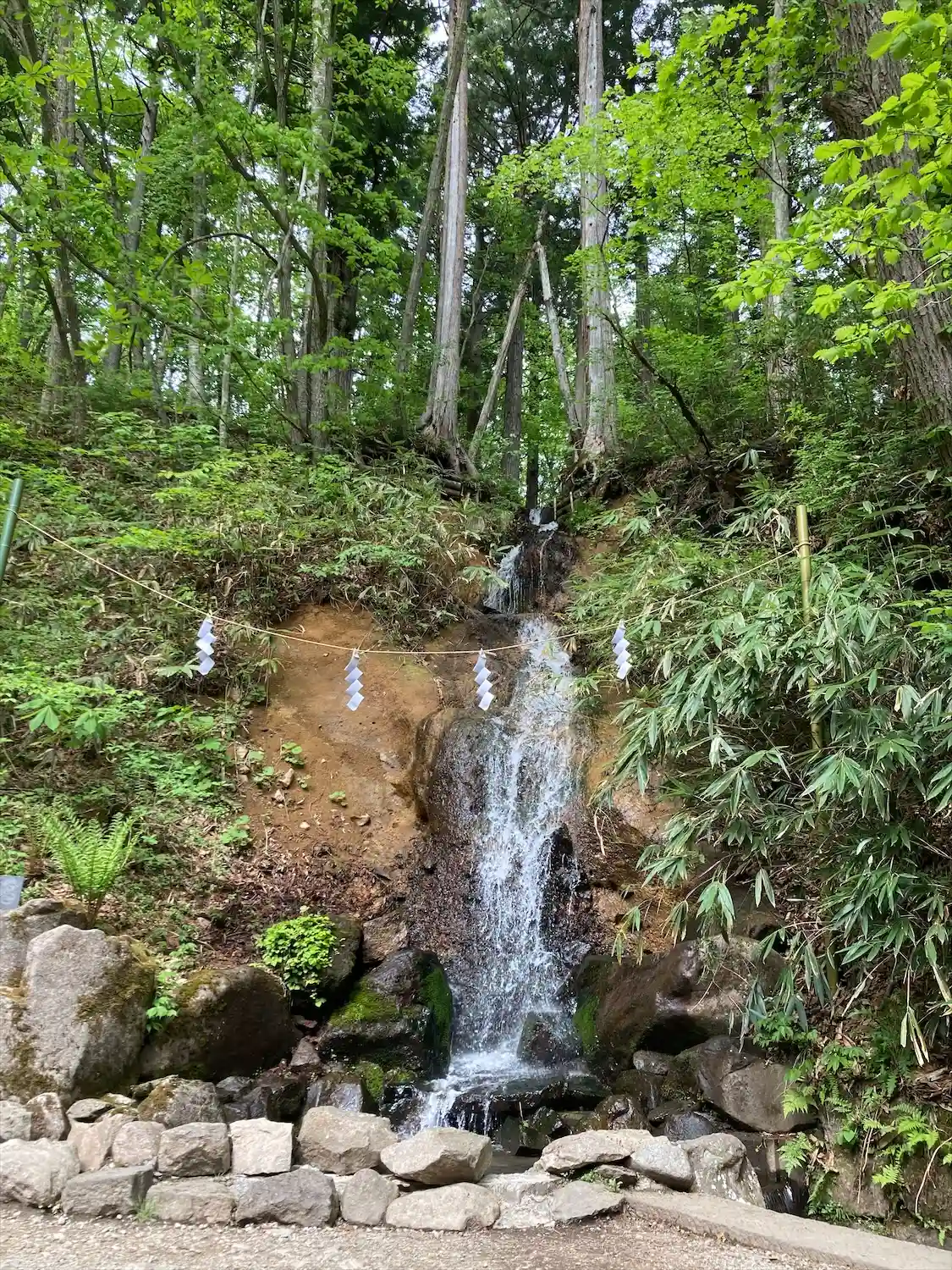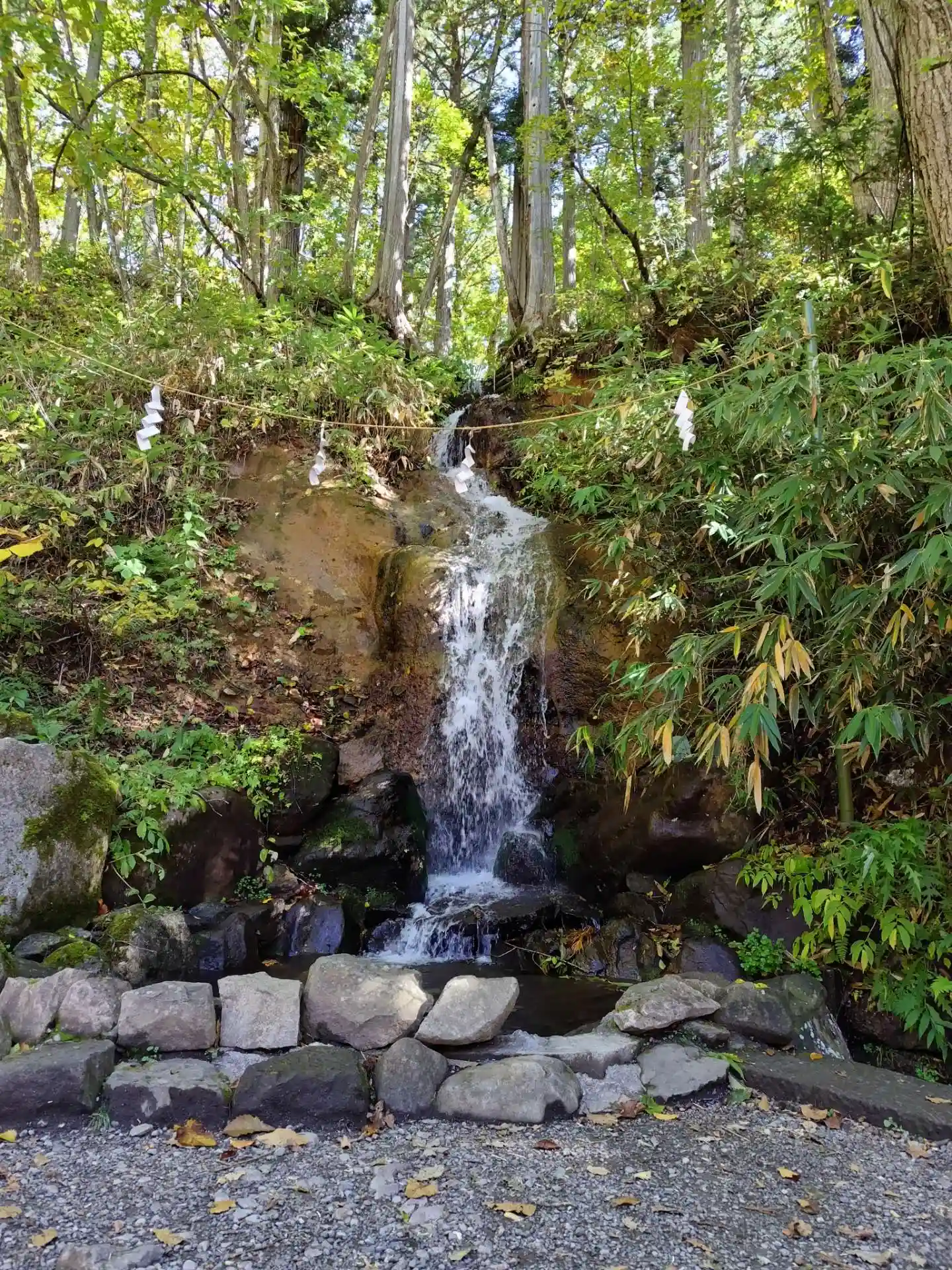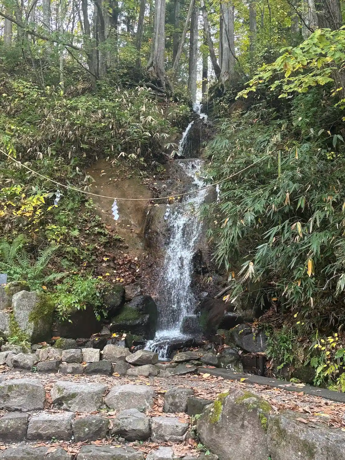お社の右側に行くと、滝がありました!