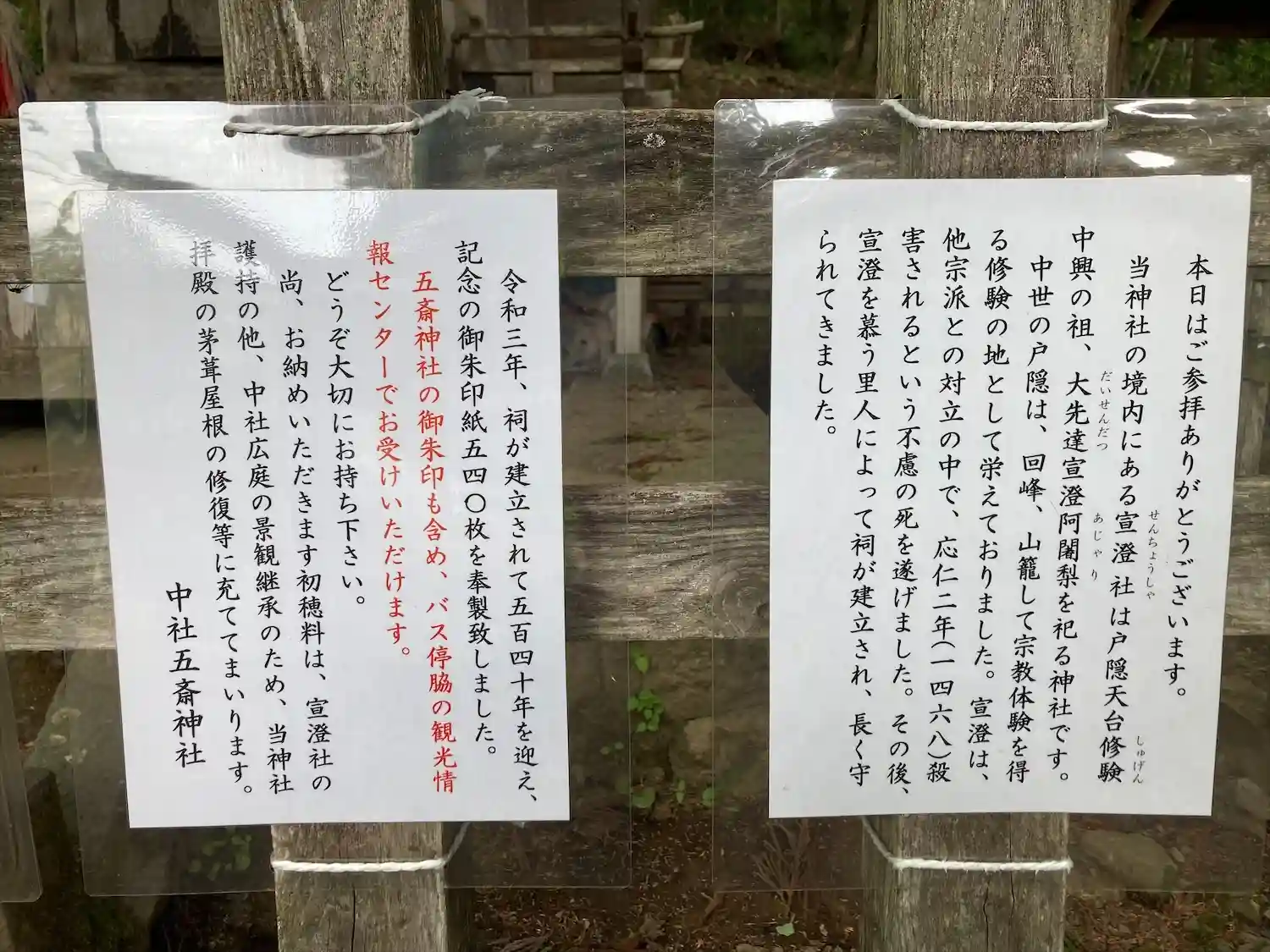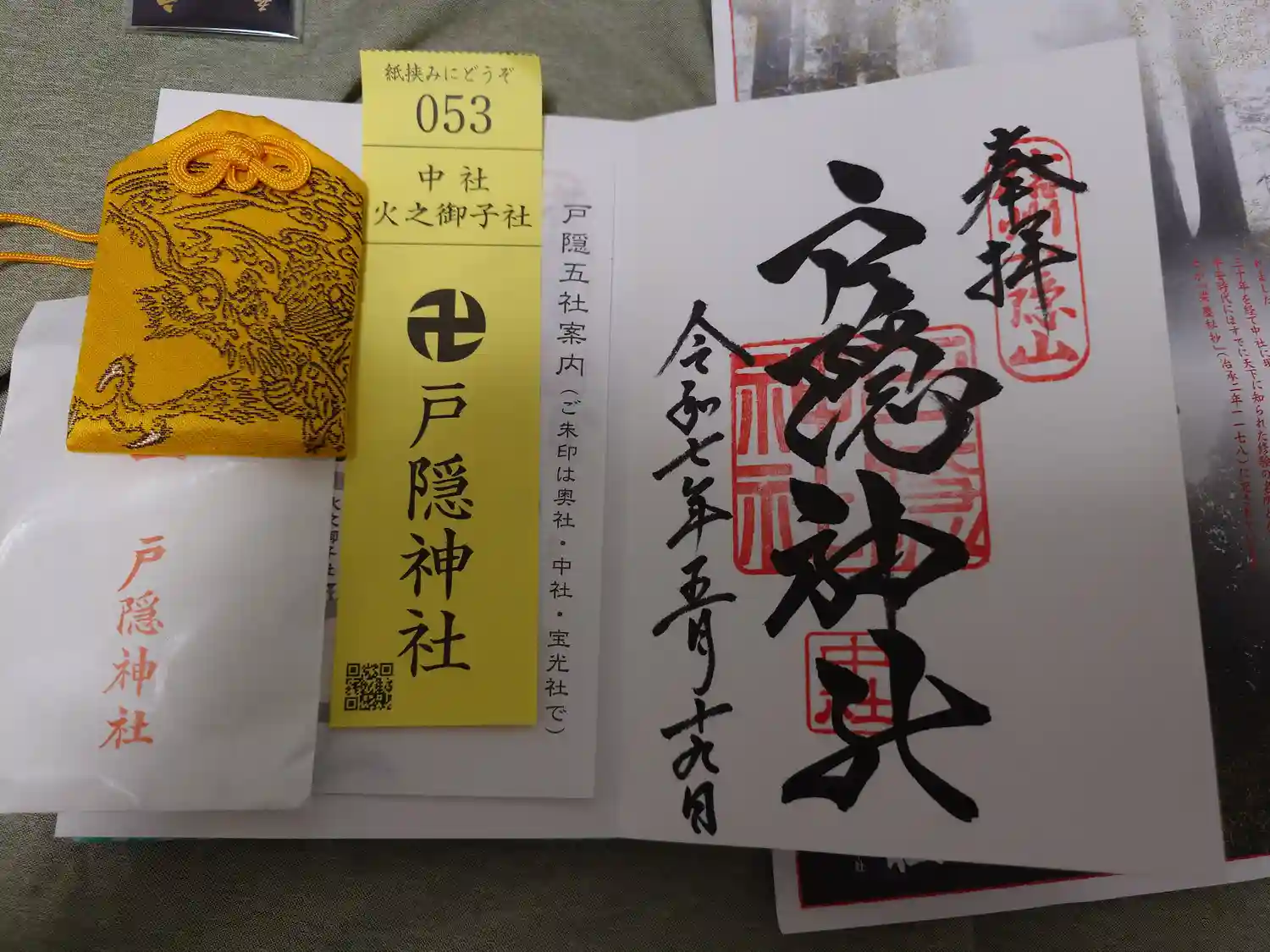 戸隠神社五社参拝記念のしおりをいただきました。