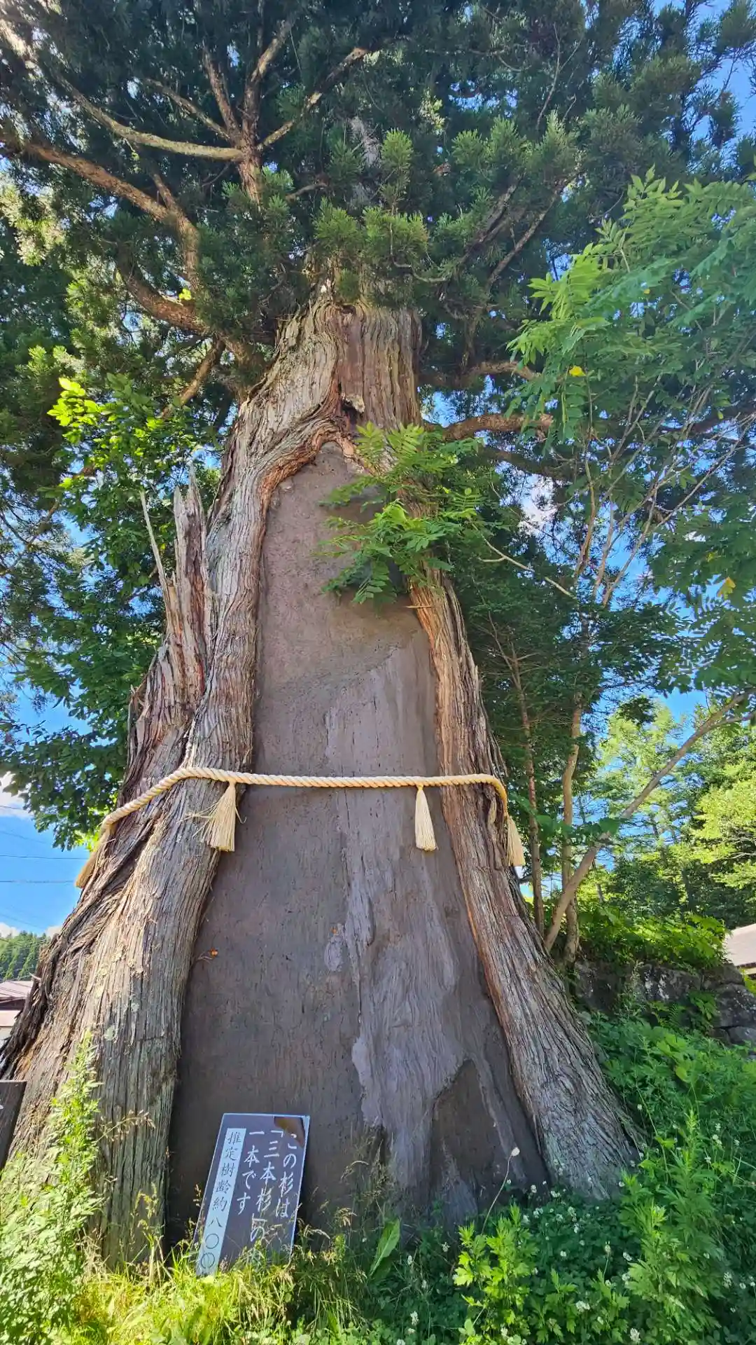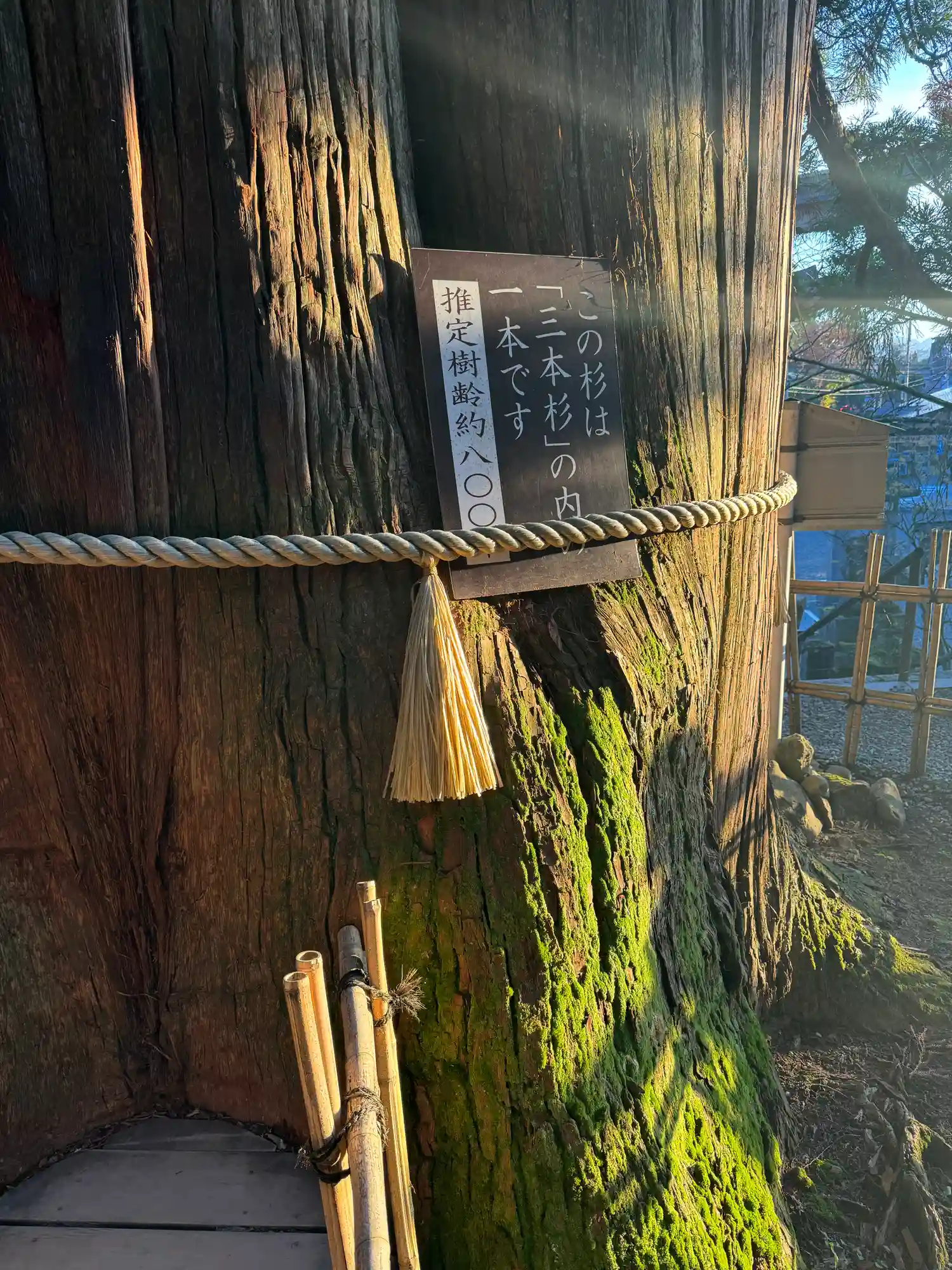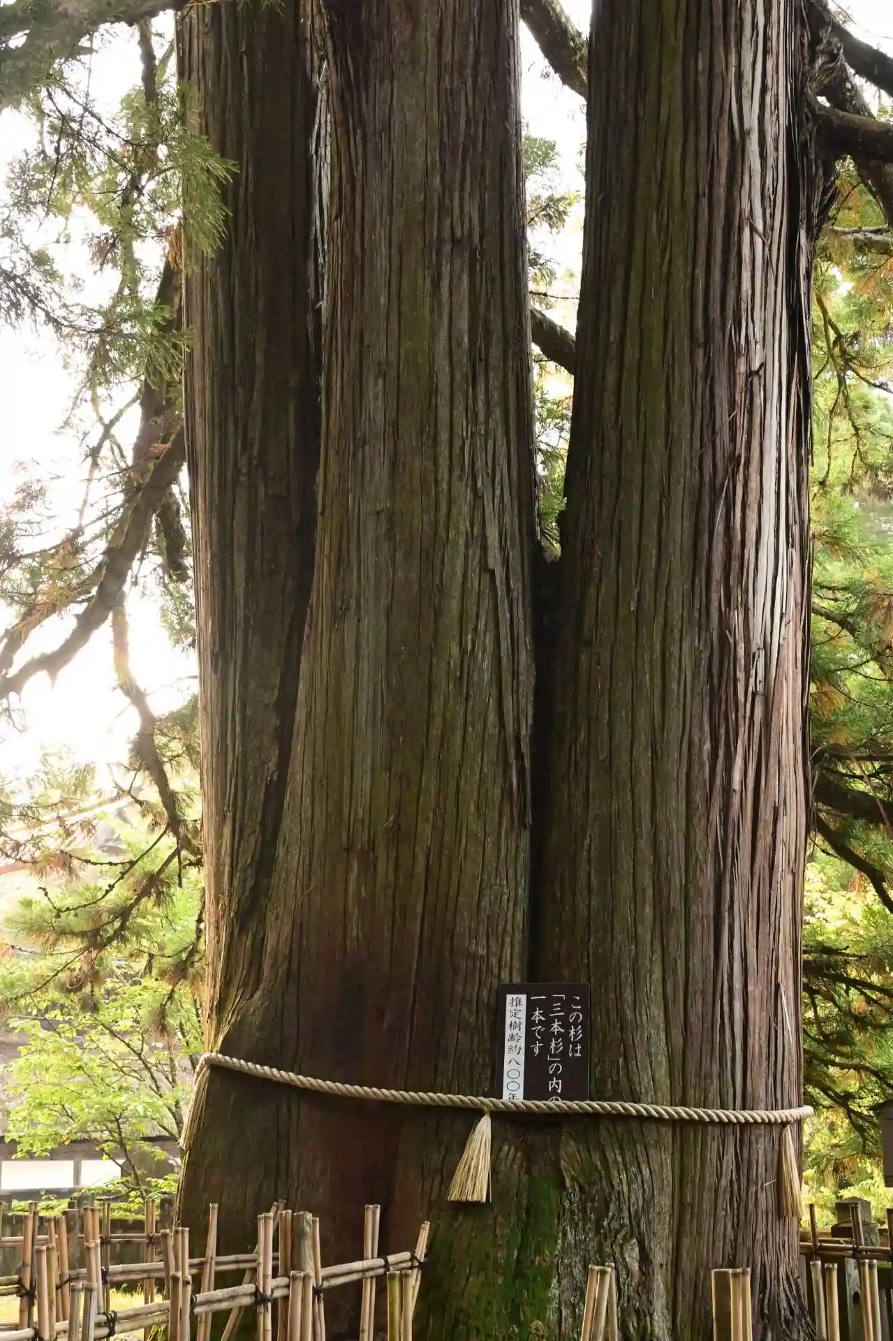 三本に分かれているから三本杉って言われているわけじゃなく、霊剣あらたかな杉が三本ある、その内の一本だそうです。