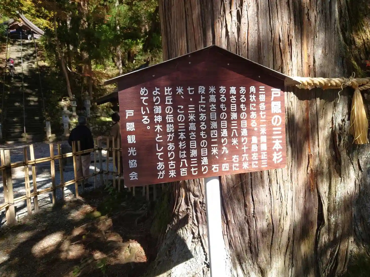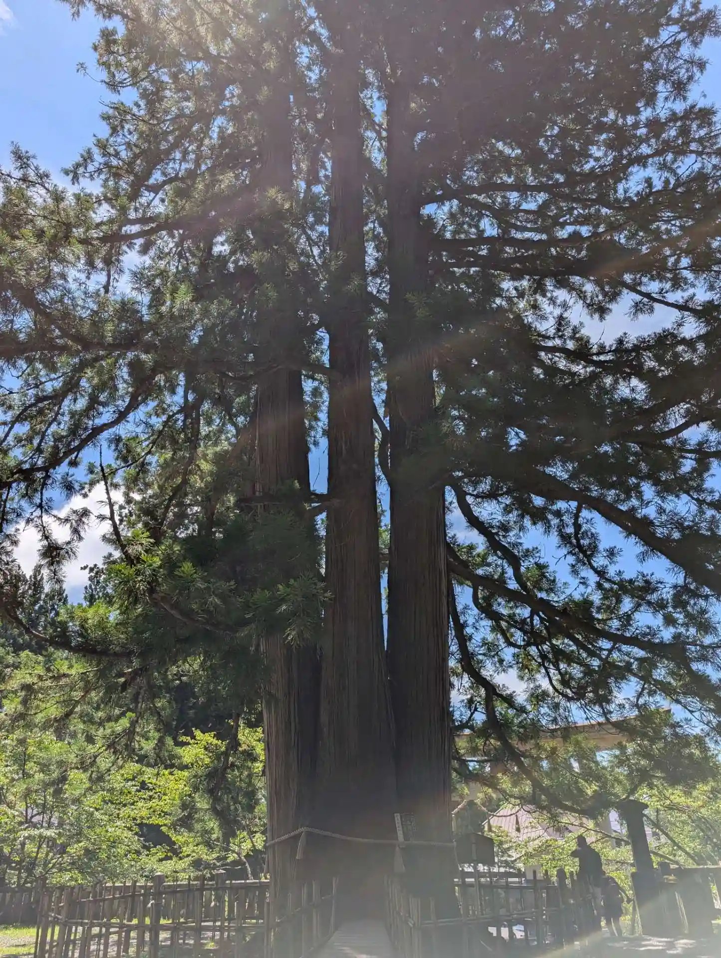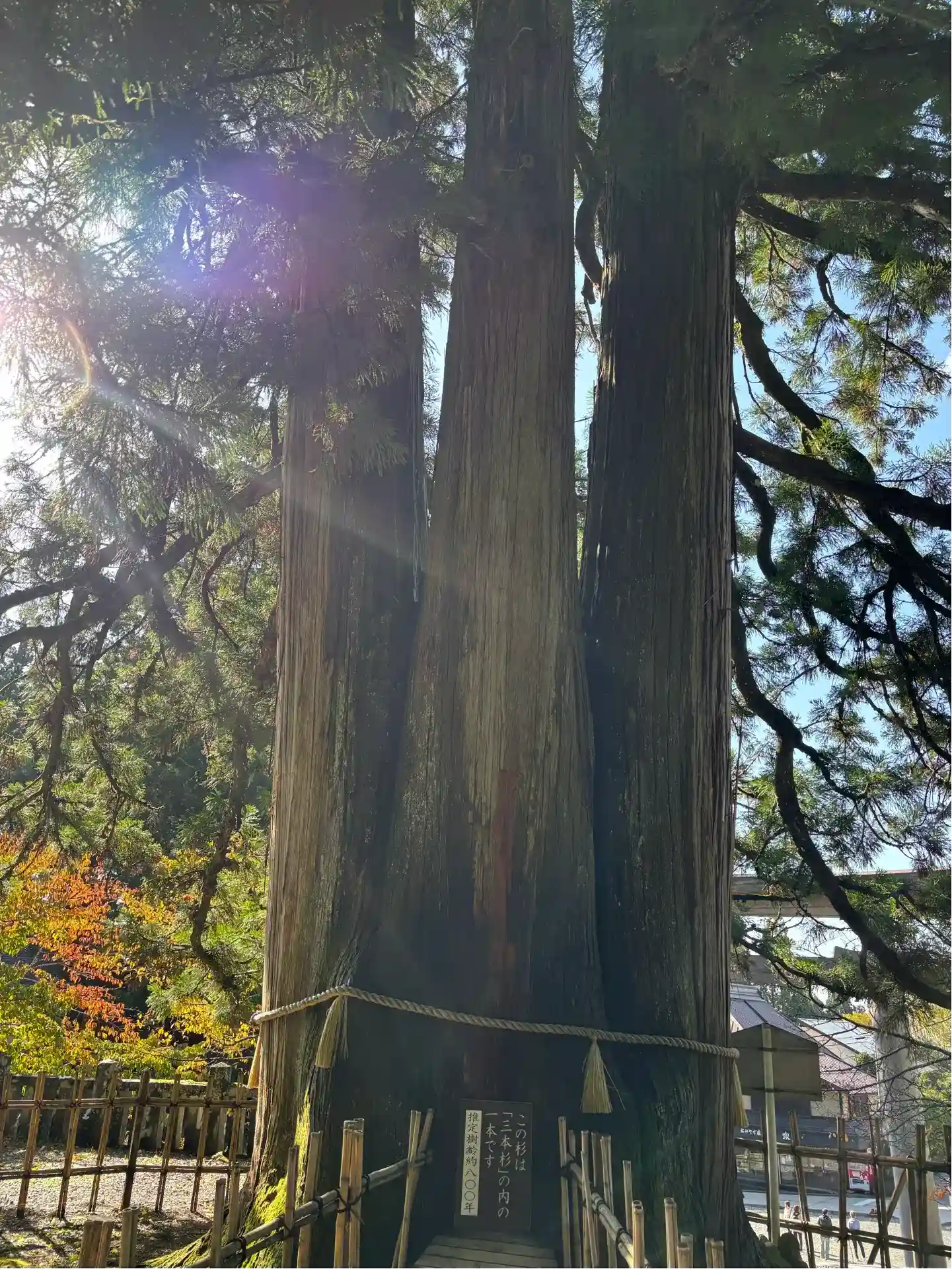 三本に分かれているから三本杉って言われているわけじゃなく、霊剣あらたかな杉が三本ある、その内の一本だそうです。