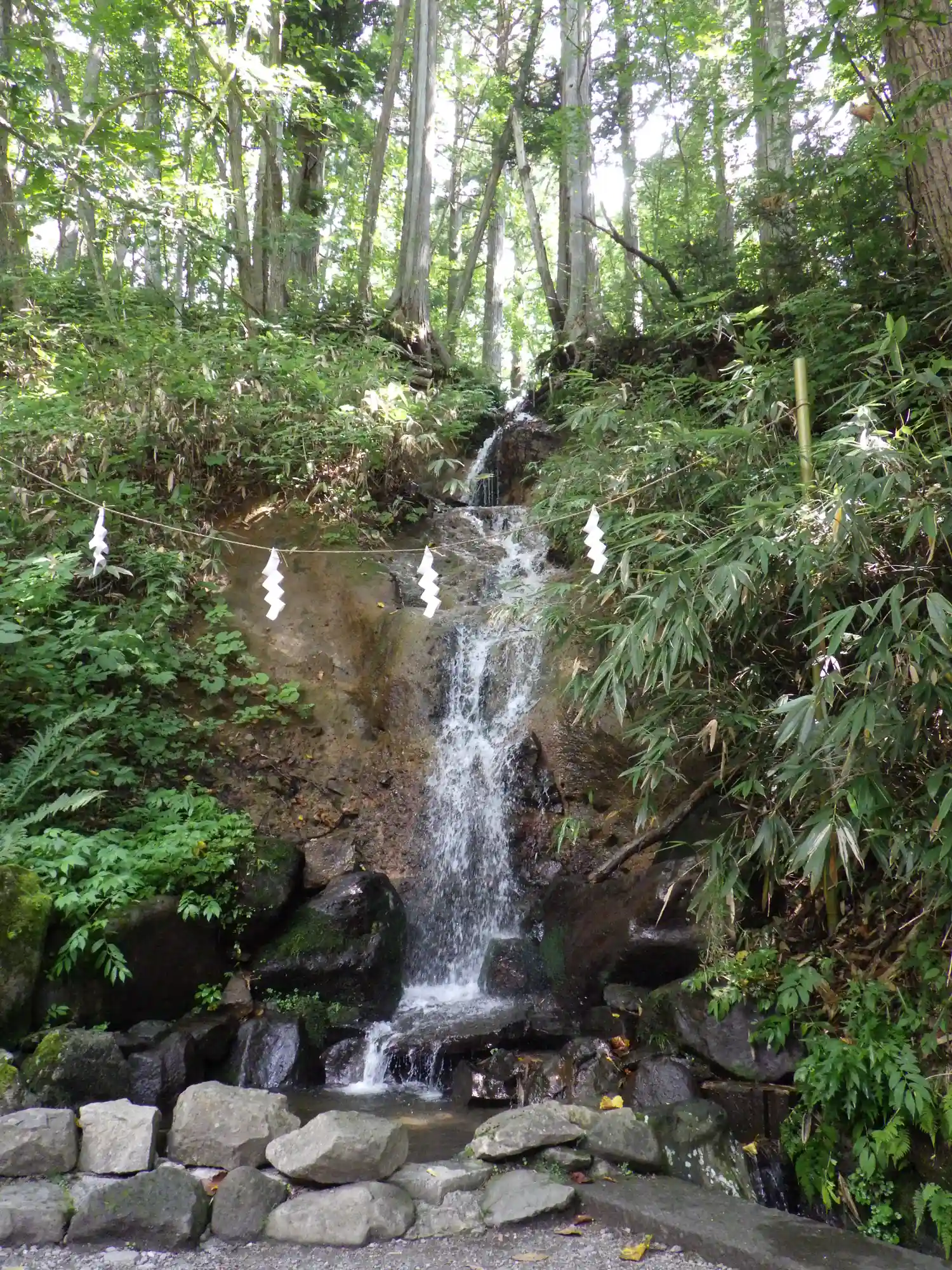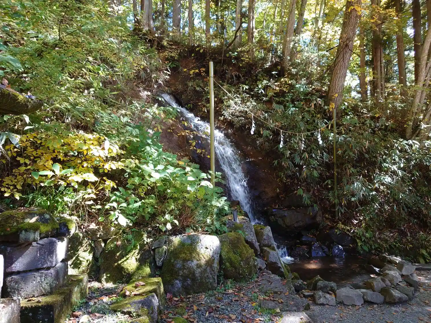 拝殿右側の斜面には、小さな滝<さざれ滝>がある。