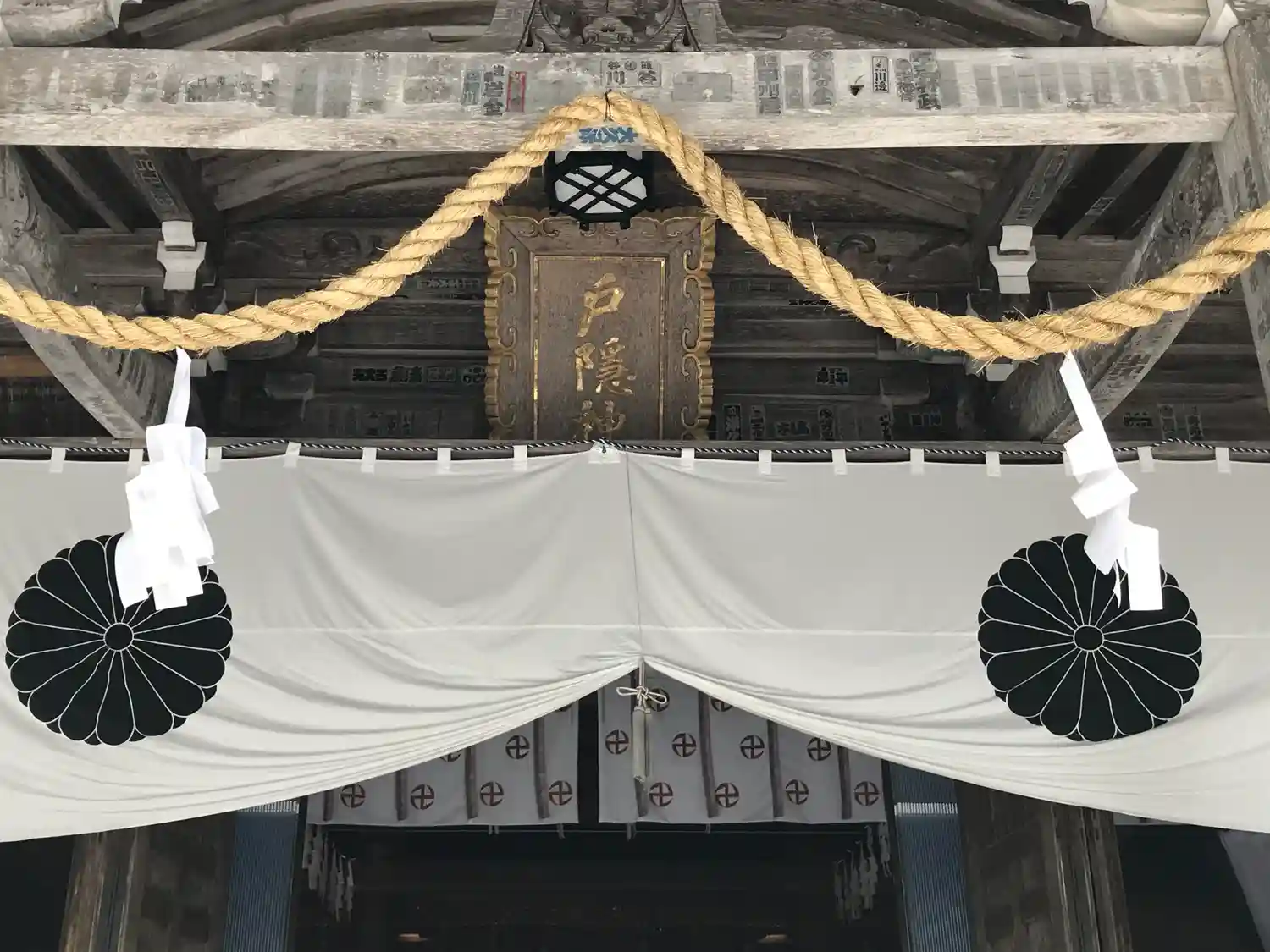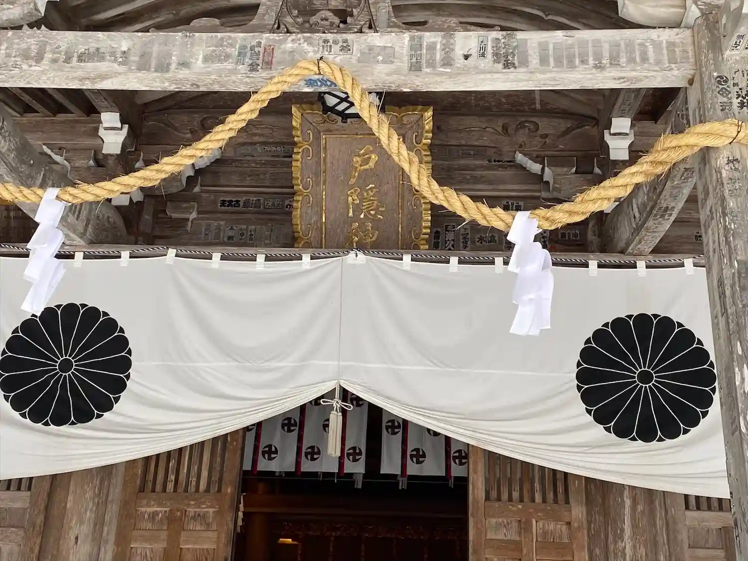 <拝殿>の後方。戸隠山を御神体として拝むので本殿はないと思われるが、拝殿の後方は本殿のようになっている。