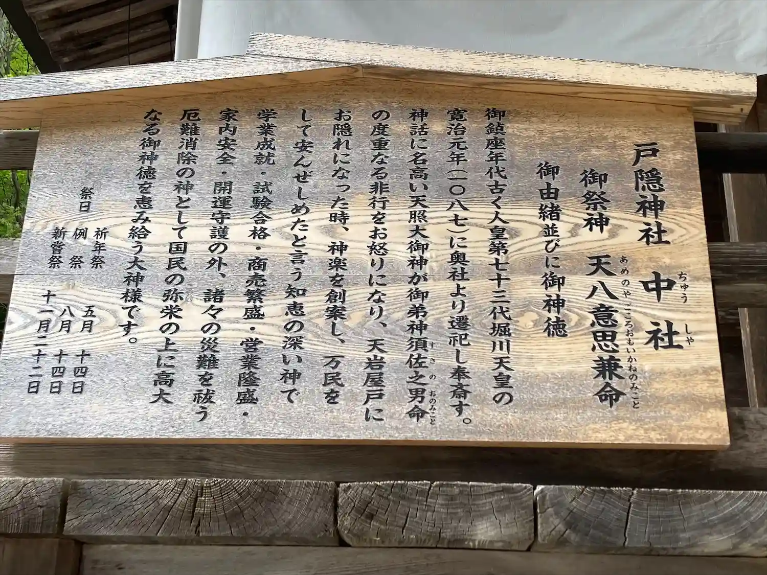 御祭神は天八意思兼命、あめのやごころおもいかねのみこと