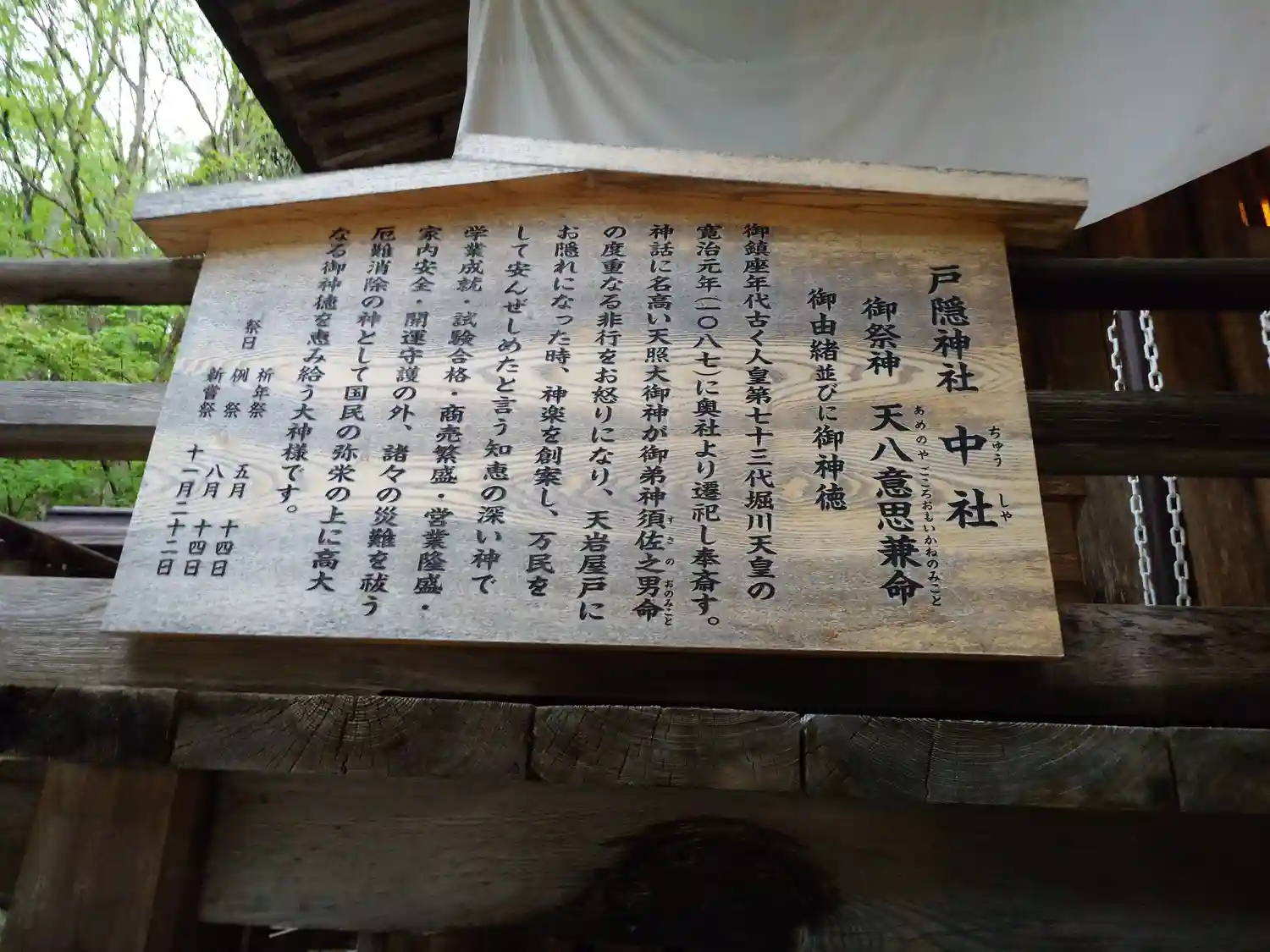 戸隠五社のひとつ。祭神は天八意思兼命(あめのやごころおもいかねのみこと)で、天照大神が天岩戸に隠れ…