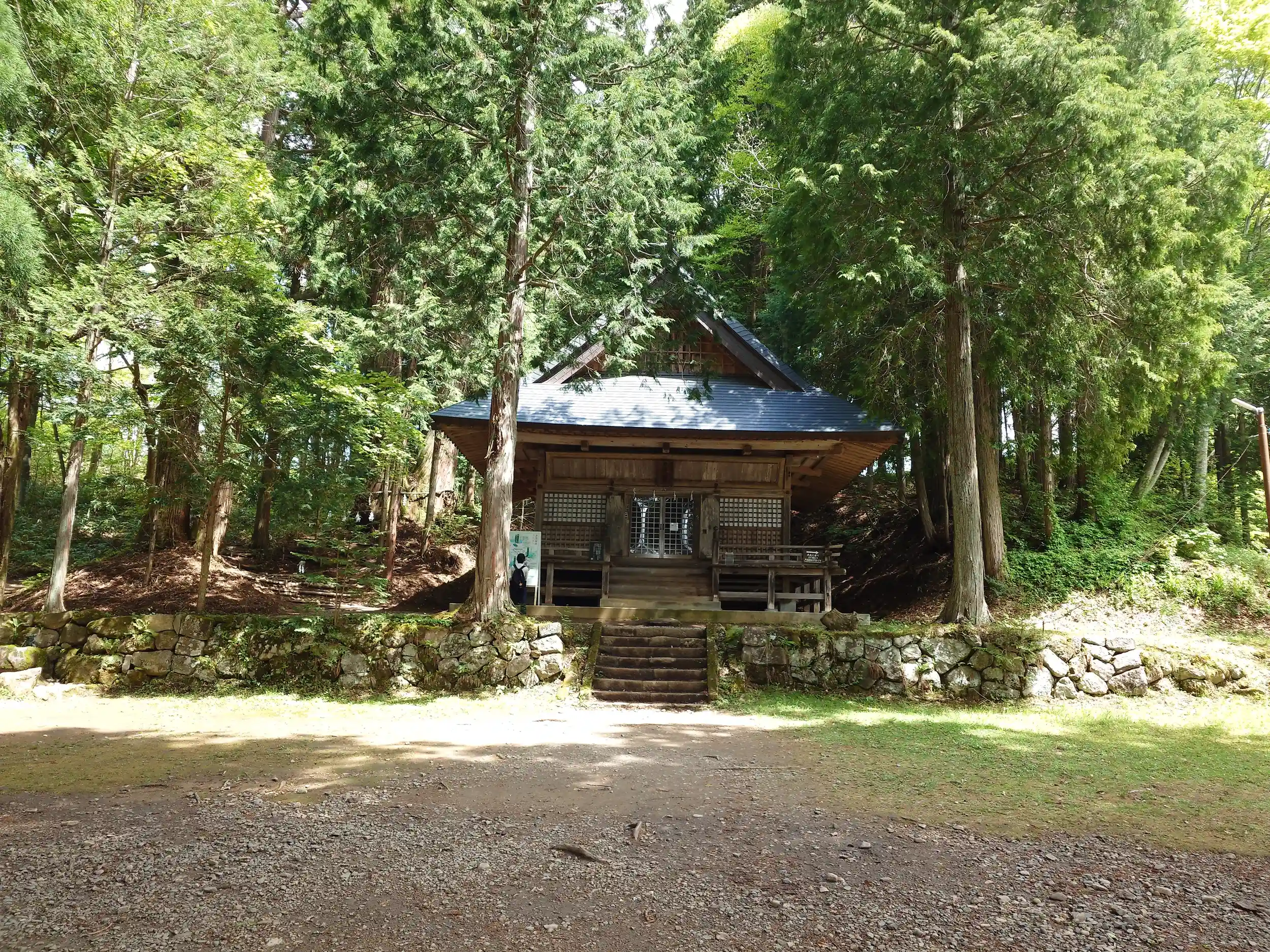 戸隠神社宝光社の御朱印を授かって上越方面から帰ろうとして火之御子社に差し掛かると、埋まっていた駐車場から1台の車がちょうど出たタイミングでした。