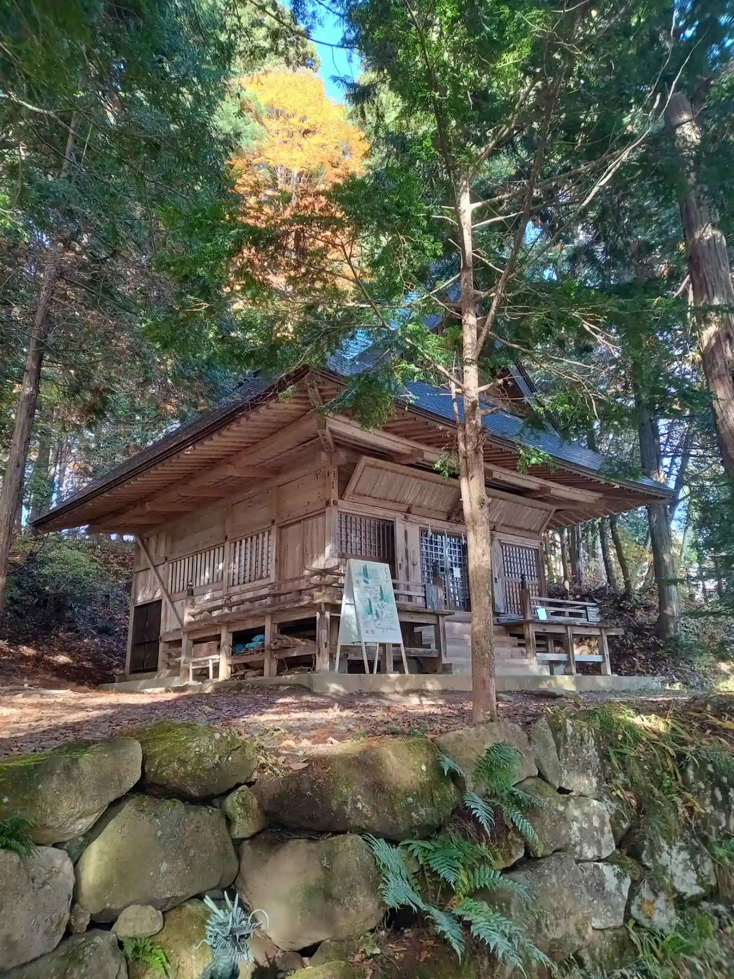 社の向こうの黄色の葉っぱが"主張"しているよう。"私もいるよ!"と···。