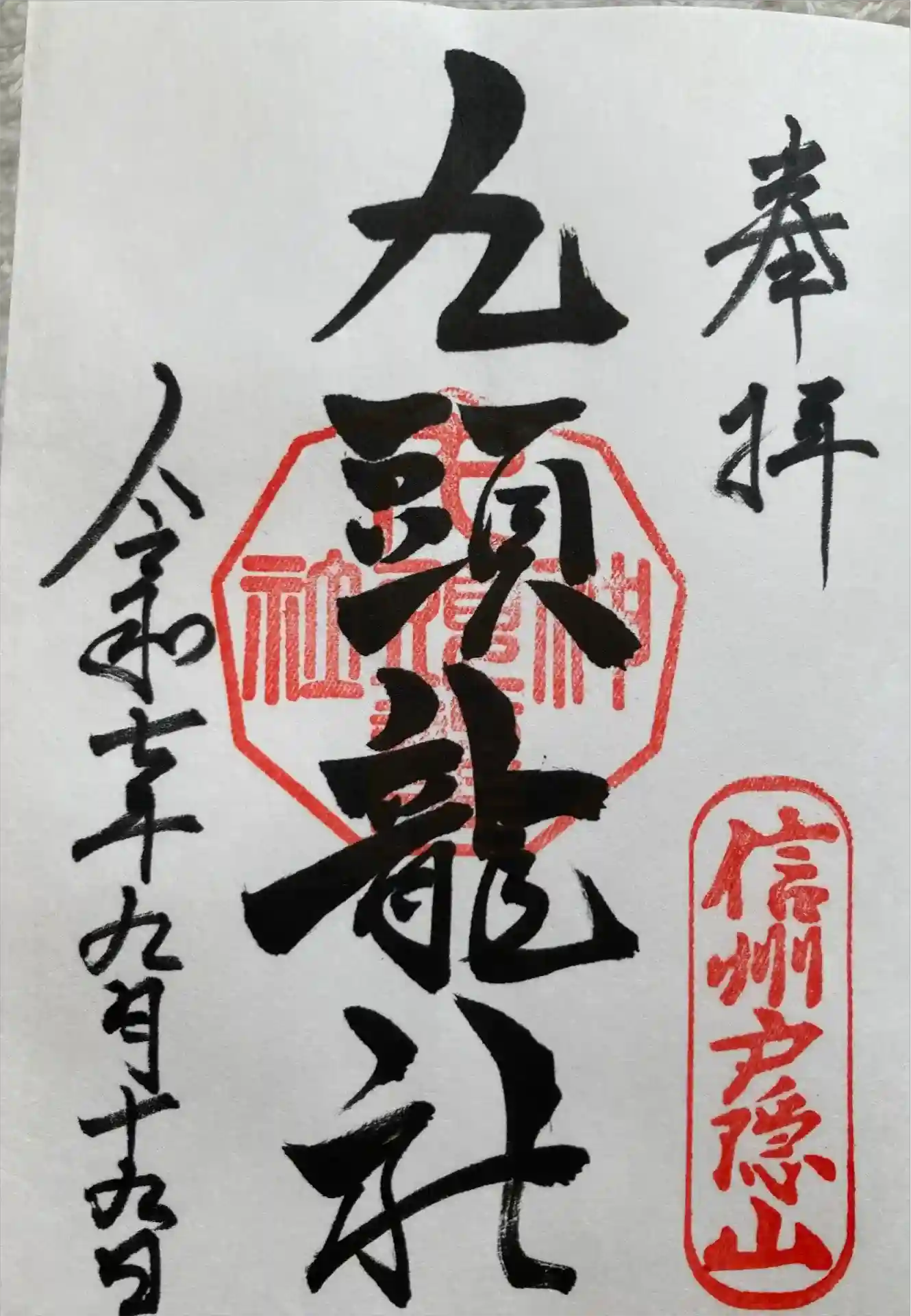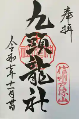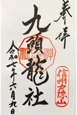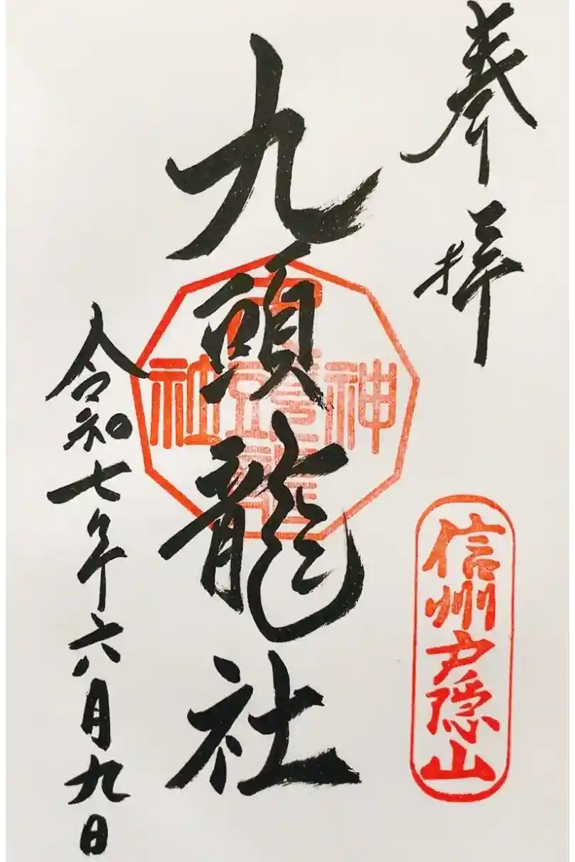 真ん中に九頭龍社と書かれ、右下に信州戸隠山の印、真ん中に九頭龍神社の印が押されています。