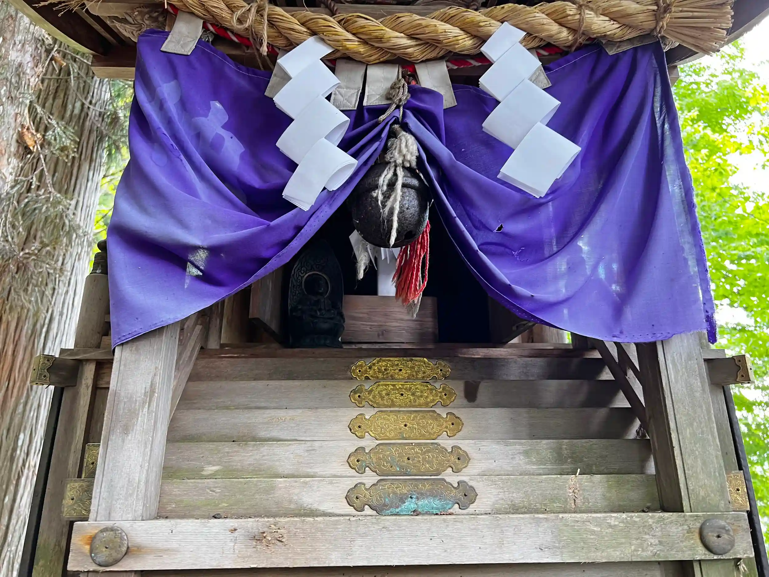 当社は、戸隠神社・中社の3段になっている境内のうち2段目の境内の、参道から外れた東端にある。一番低い段に隣接する五斎神社の大きな藁葺屋根の拝殿があるが、これが神社と関係のない一軒家のような独立した建物に見えることもあるのか、その後ろにある当社社殿にまで登って来る人は少ないようだった。
