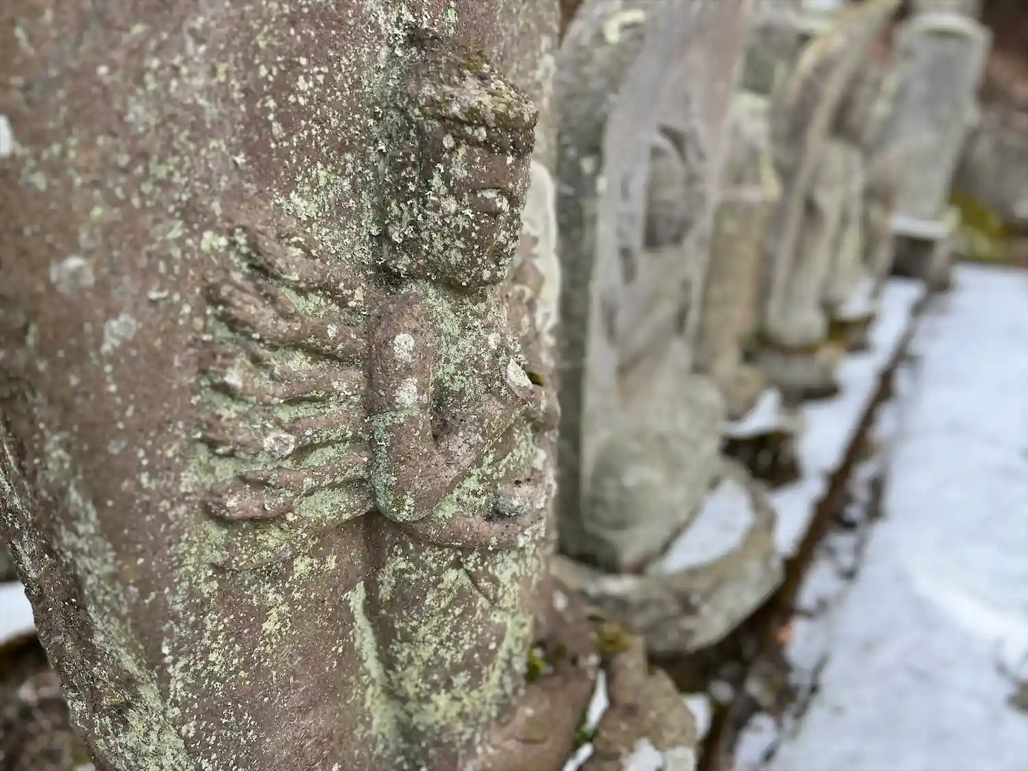 境内に何十もの古い仏像群が四列に整然と…