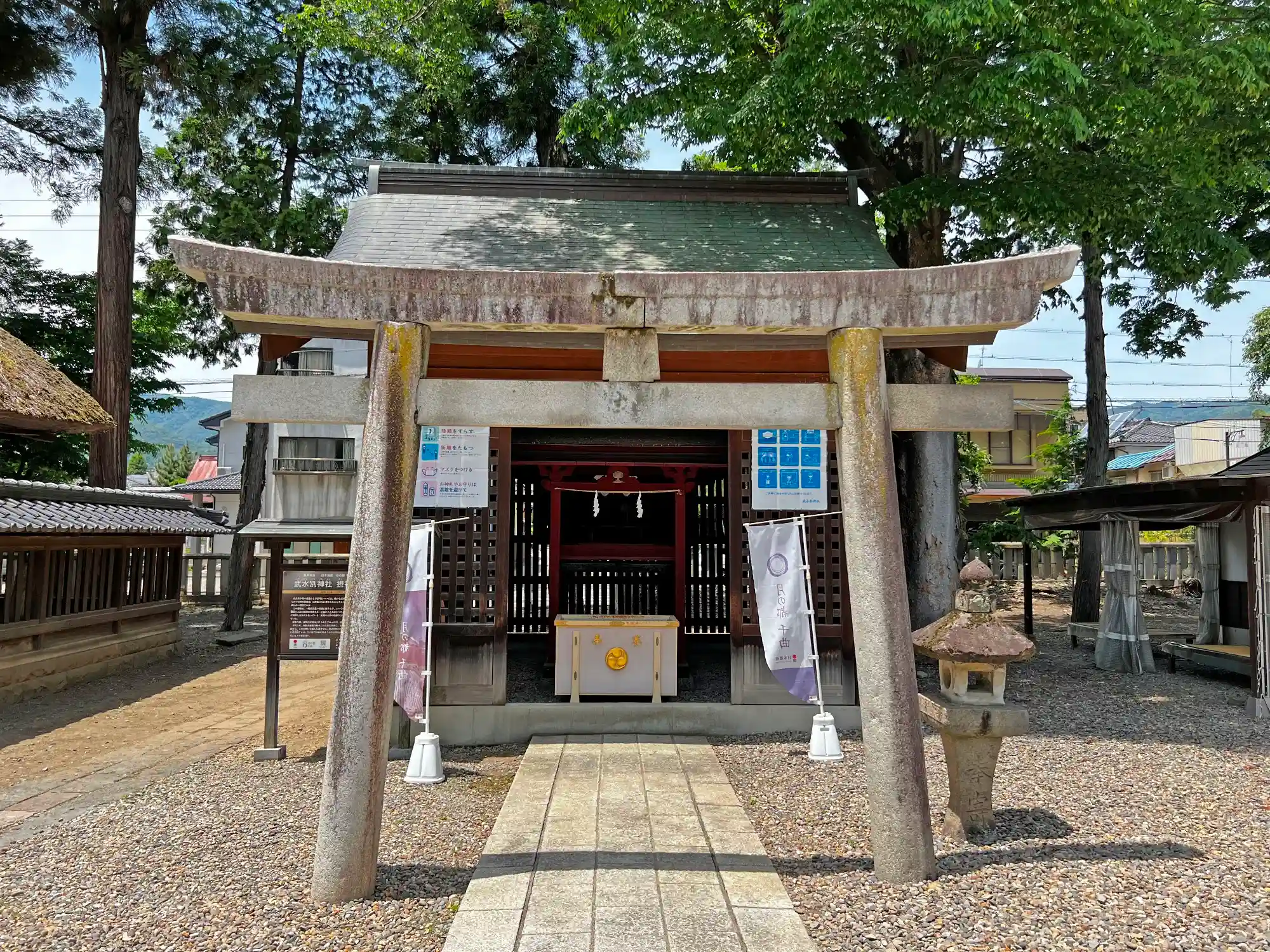 今回は、信濃國の式内(名神大)論社、長野県の旧県社、別表神社であることから参拝することに。参拝時は休日の午前中で、天気の良い週末ということもあるが、自分たち以外にも普通の参拝者が訪れていたほか、何組もの家族連れがおめかしをして祈祷を受けに訪れていた。