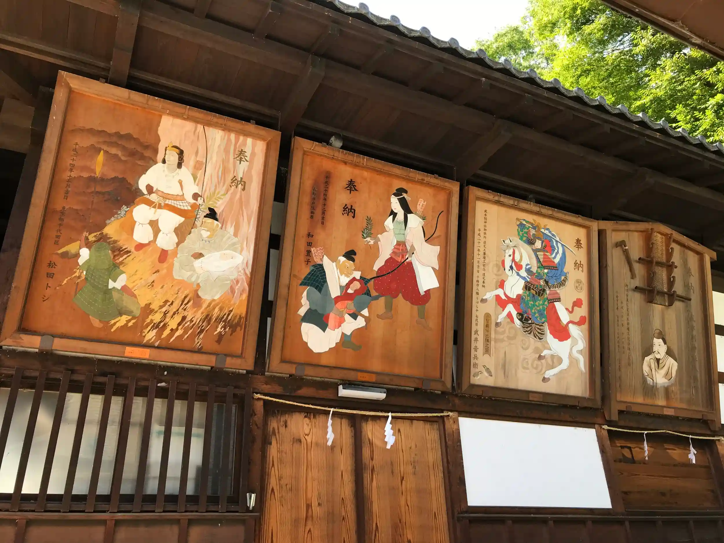五穀豊穣と千曲川の氾濫防止を祈り武水別大神を祀り、安和年間(968年~970年)には京都の石清水八幡宮から八幡三神を勧請し、相殿に祀っている。