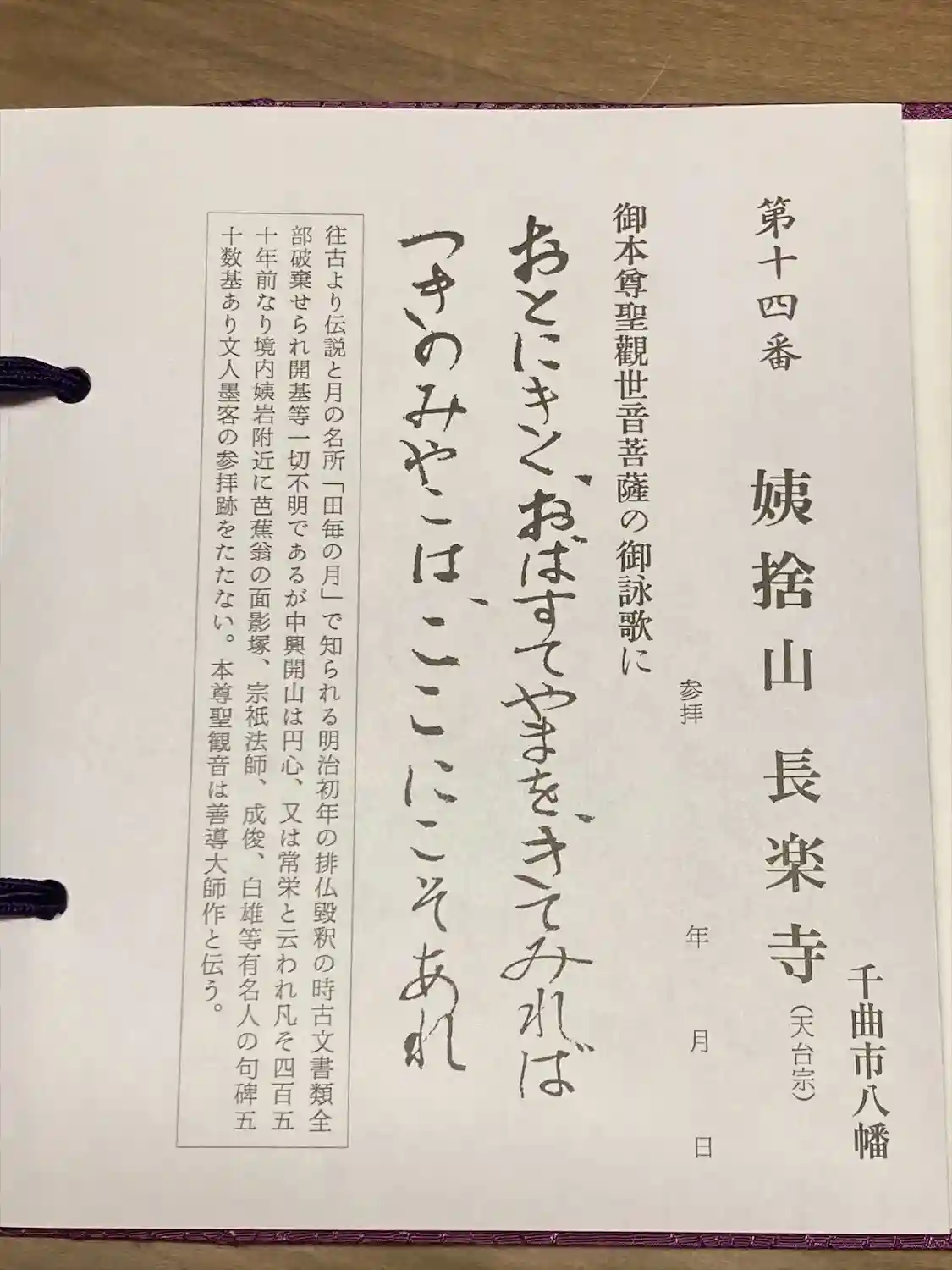 信濃三十三観世音霊場第十四札所の姨捨山長楽寺さんに参拝してきました。観音堂うらには大きく立派な姨岩…