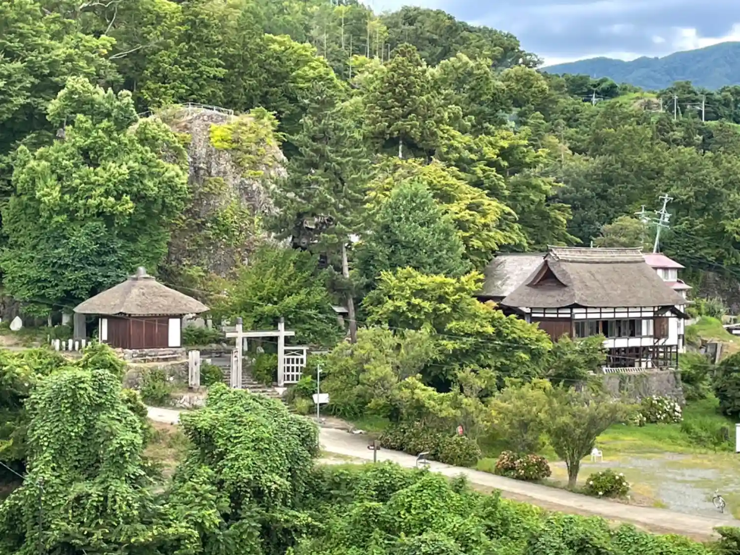 長楽寺全景、真ん中左が姨石