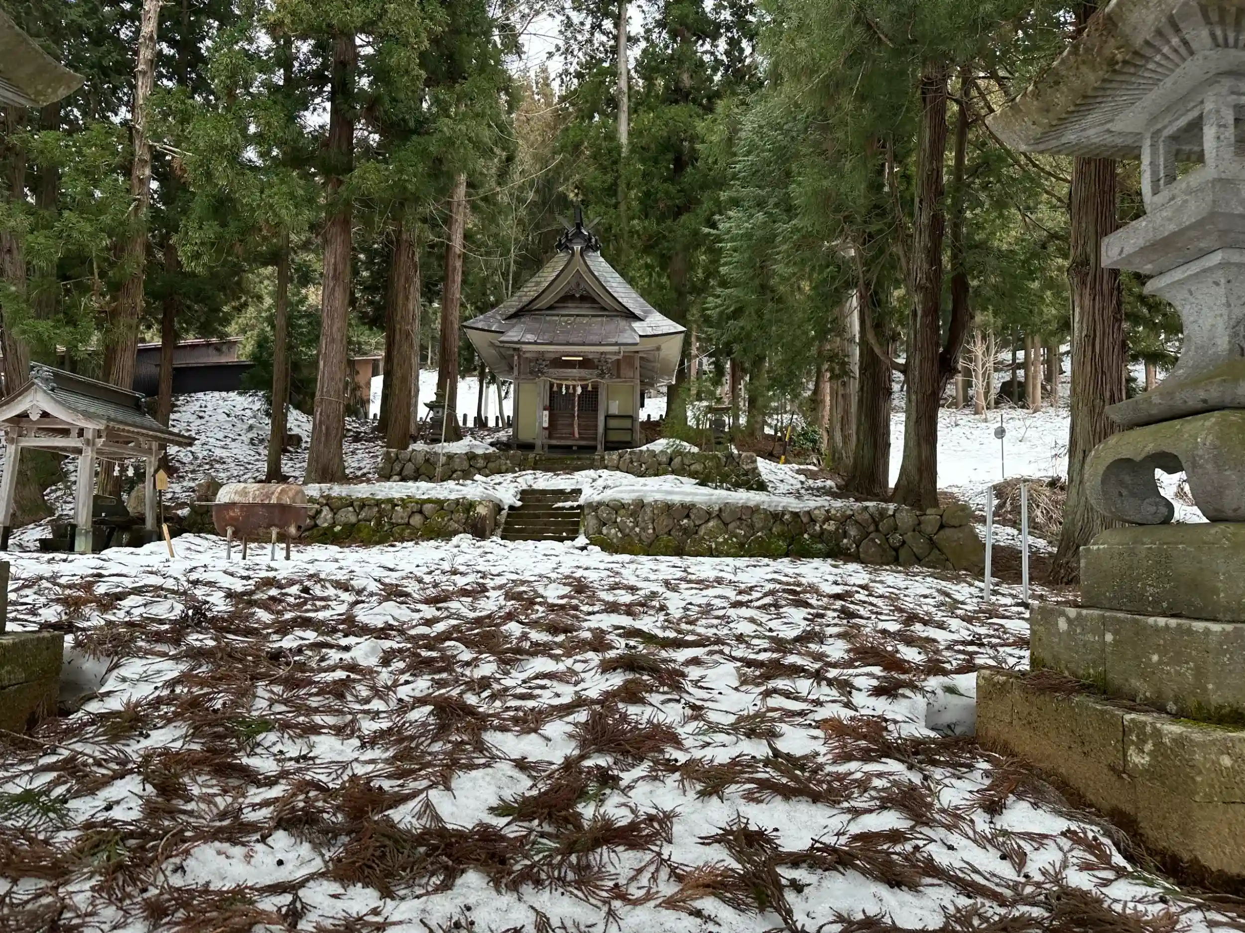 またかつて2月には民俗行事として「山の神祭」というものがあり、山に入って仕事をする人たちがメインで集まって小豆飯を作り酒を供えて山の神へ拝礼をするものなんだそうで、村における重要な仕事に対して見守っていただくための祭りを行う神社だったようです。