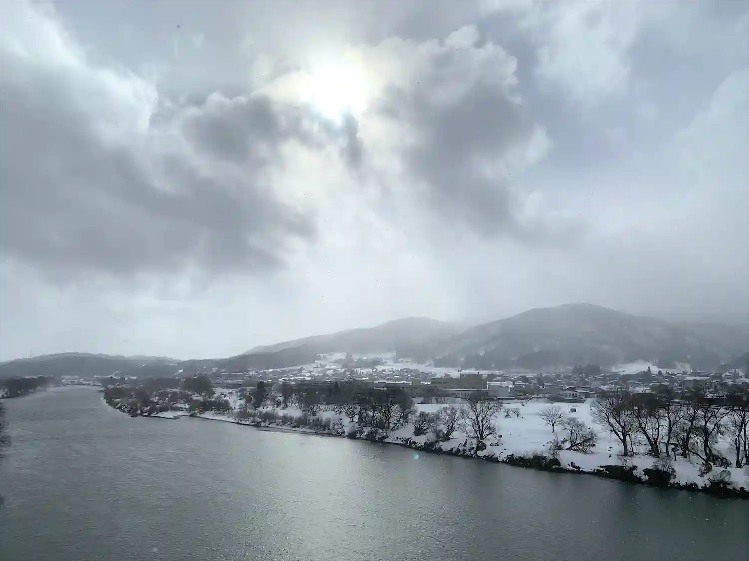 本日の千曲川。モノクロのように見えますがカラー写真です。雪国あるある。今年の2月は例年より参拝者が多い印象です❄️
