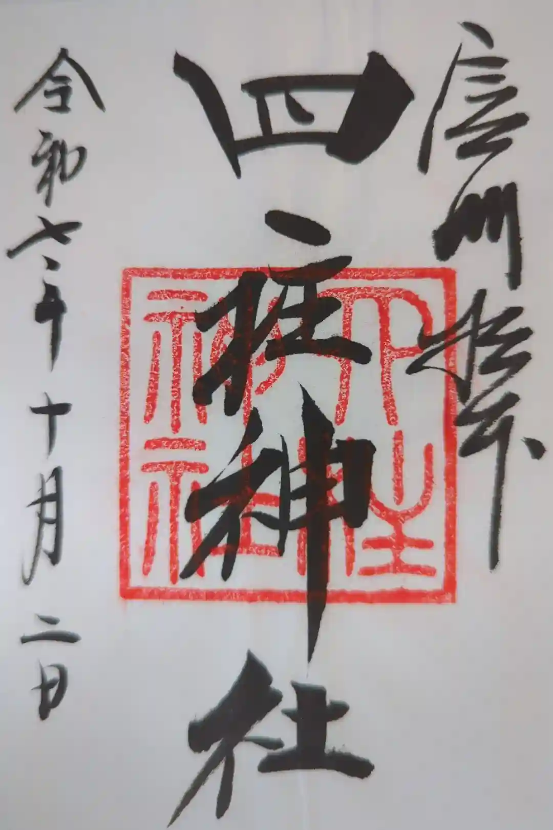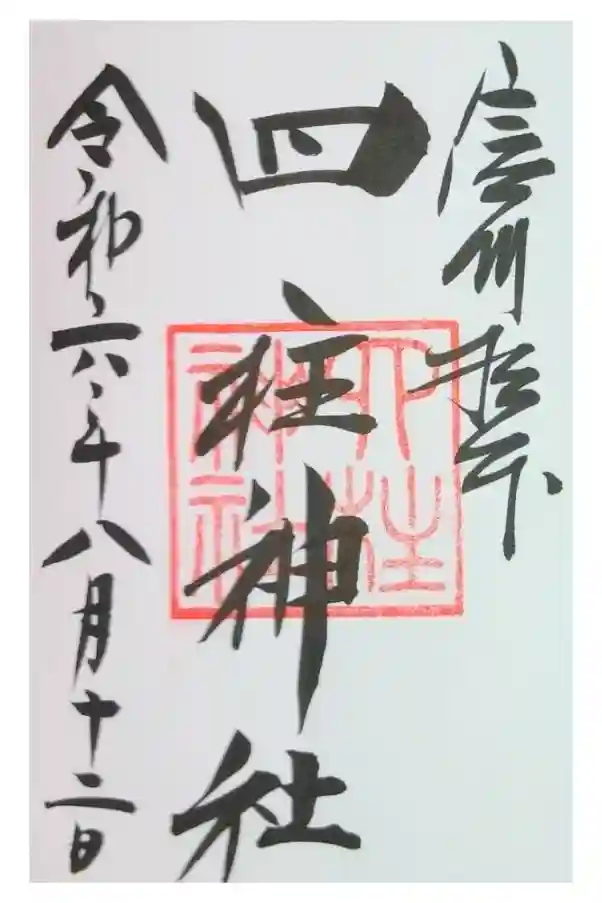 右上に「信州松本」、真ん中に「四柱神社」と書かれ、四柱神社の社印が押されています。