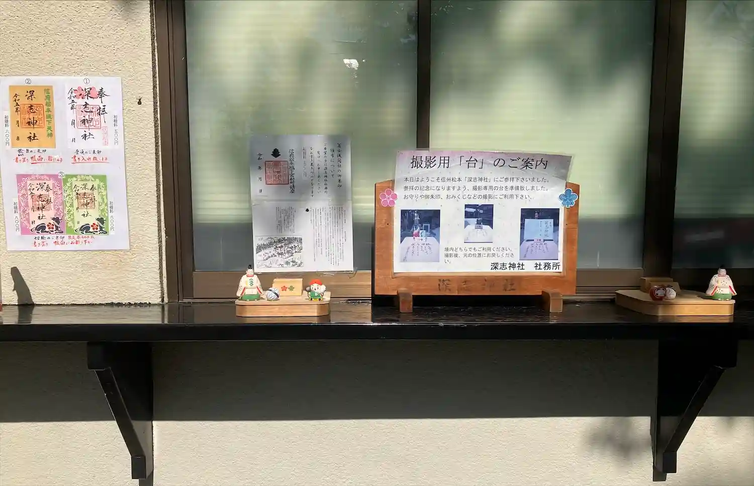社務所前に写真撮影出来るよう台が用意されています。📸